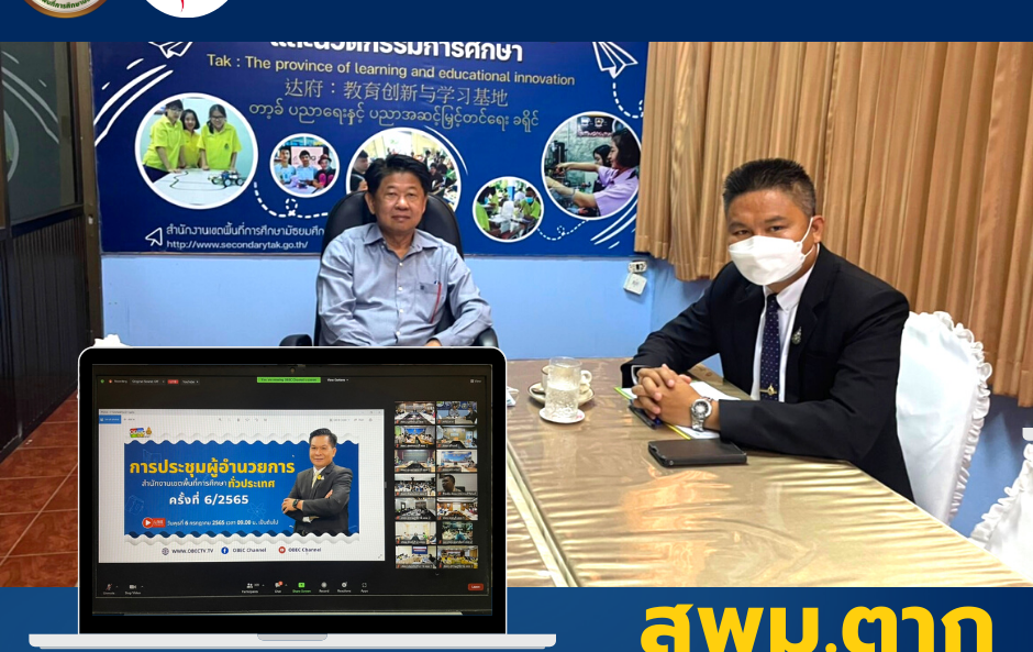 วันที่ 6 กรกฎาคม 2565 ดร.อวยชัย ศรีตระกูล ผอ.สพม.ตาก พร้อมด้วย นายเอกชัย ใจก๋องแก้ว รอง ผอ.สพม.ตาก เข้าประชุมผู้อำนวยการสำนักงานเขตพื้นที่การศึกษา ทั่วประเทศครั้งที่ 6/2565 รับฟังข้อชี้แจงนโยบาย สพฐ. โดยมี นายอัมพร พินะสา เป็นประธานการประชุม ผ่านช่องทาง Zoom meeting