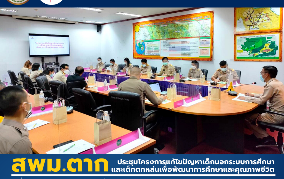 วันที่ 5 กันยายน 2565 ดร.อวยชัย ศรีตระกูล ผอ.สพม.ตาก มอบหมายให้ นายเอกชัย ใจก๋องแก้ว รอง ผอ.สพม.ตาก เข้าร่วมประชุมโครงการแก้ไขปัญหาเด็กนอกระบบการศึกษาและเด็กตกหล่น เพื่อพัฒนาการศึกษาและคุณภาพชีวิต โดยมี นายปิลัทธ์ อุดมวงษ์ ผอ.สพป.ตาก เขต 2 เป็นประธานการประชุม ณ ห้องประชุมประทีป ศาลากลางจังหวัดตาก