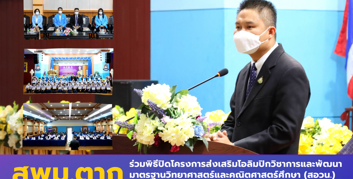 วันที่ 23 ตุลาคม 2565 ส.ต.ต. ดร.นปดล นพเคราะห์ ผอ.สพม.ตาก มอบหมายให้ นายเอกชัย ใจก๋องแก้ว รอง ผอ.สพม.ตาก เป็นประธานปิดโครงการส่งเสริมโอลิมปิกวิชาการ และพัฒนามาตรฐานวิทยาศาสตร์และคณิตศาสตร์ศึกษา (สอวน.) สาขาวิชาคณิตศาสตร์ ประจำปีการศึกษา 2565 ศูนย์โรงเรียนตากพิทยาคม พร้อมทั้งมอบเกียรติบัตร ให้กับคณะครูและนักเรียนที่เข้าร่วมโครงการฯ จัดขึ้นระหว่างวันที่ 9-23 ตุลาคม 2565 ณ หอประชุมกาญจนาภิเษก โรงเรียนตากพิทยาคม อำเภอเมืองตาก จังหวัดตาก