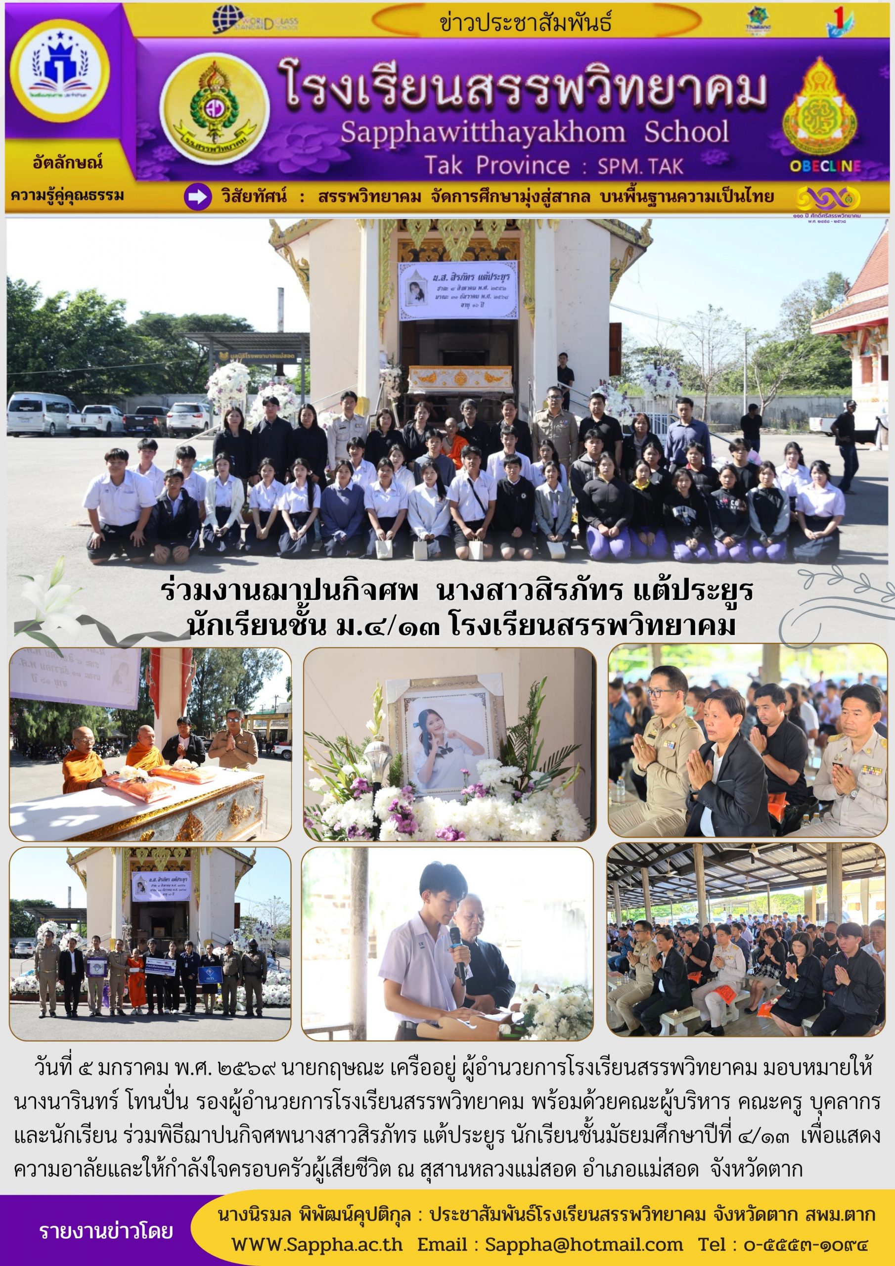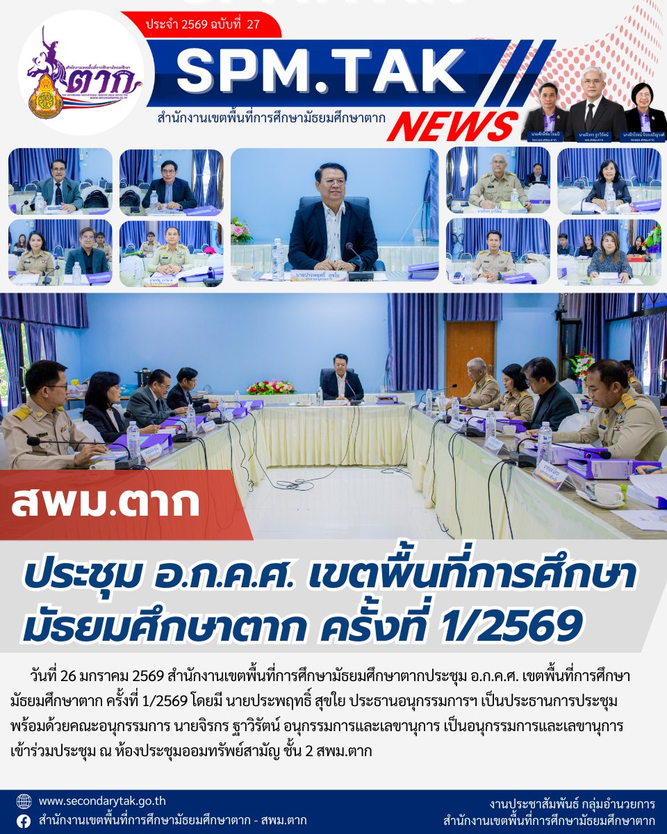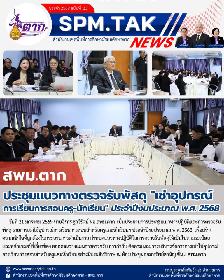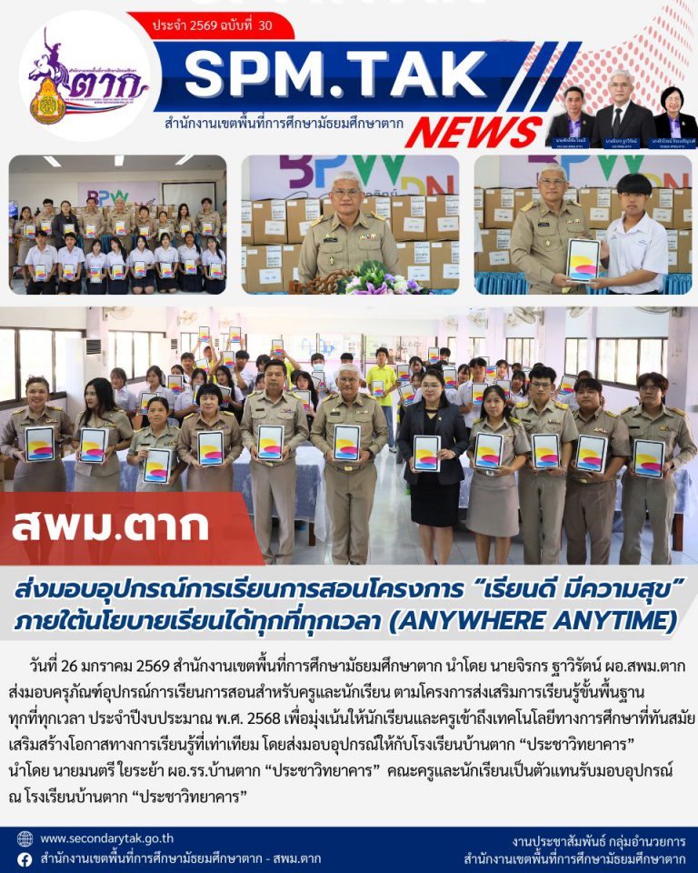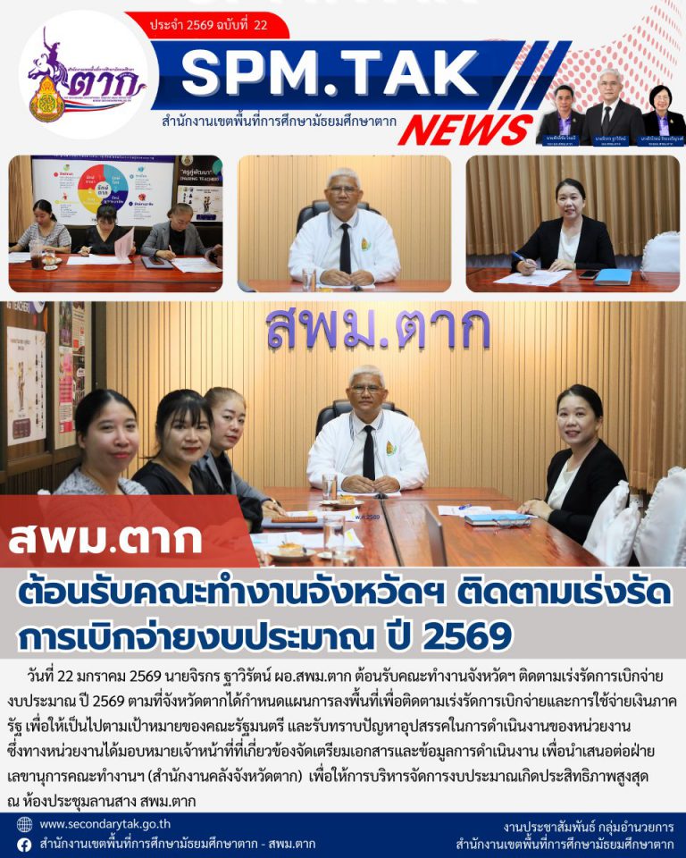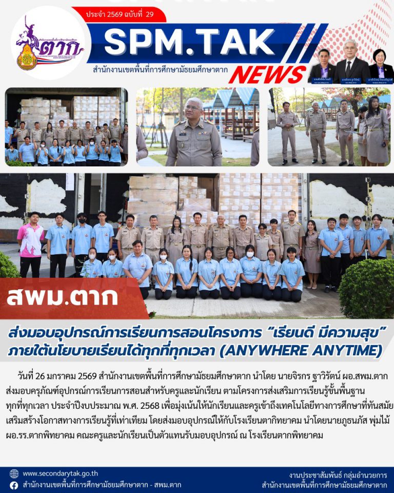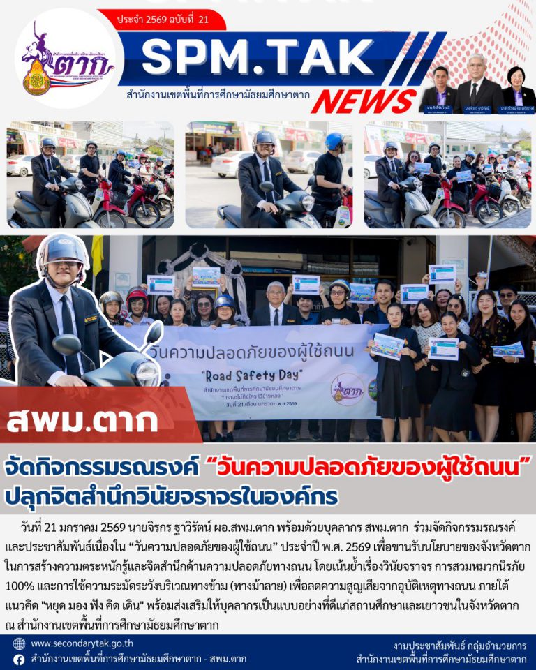 ประกาศสำนักงานเขตพื้นที่การศึกษามัธยมศึกษาตาก เรื่อง ผลการคัดเลือกเด็กและเยาวชนดีเด่น ประจำปี ๒๕๖๙ สำนักงานเขตพื้นที่การศึกษามัธยมศึกษาตาก