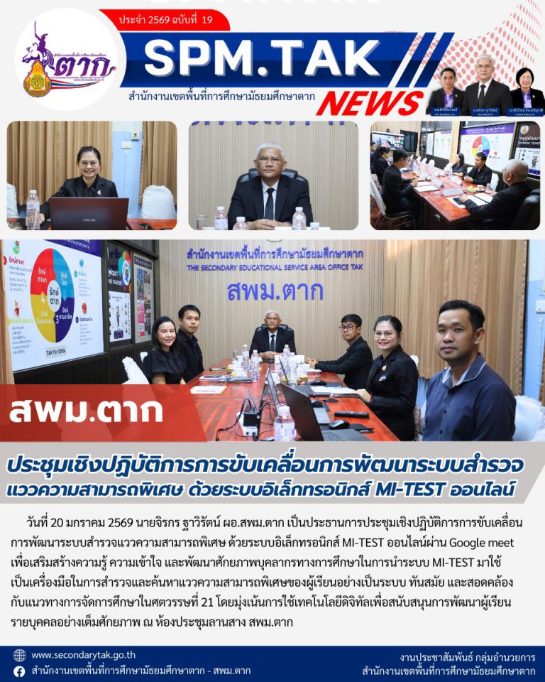 ประกาศผลการพิจารณาคัดเลือกผลงานแนวปฏิบัติที่เป็นเลิศ (Best Practice) การขับเคลื่อนงานตาม โครงการ “พาน้องกลับมาเรียน นำการเรียนไปให้น้อง” สำนักงานเขตพื้นที่การศึกษามัธยมศึกษาตาก (SPM Tak Zero Dropout) เพื่อลดความเสี่ยง และอัตราการออกกลางคันของผู้เรียน