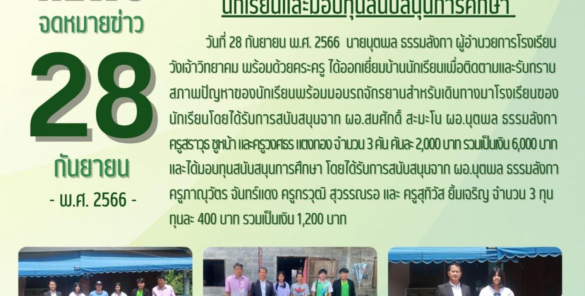 โรงเรียนวังเจ้าวิทยาคม มอบรถจักรยานและมอบทุนสนับสนุนการศึกษา วงศธร แตงทอง 29 กันยายน 2566 อ่านเพิ่มเติม