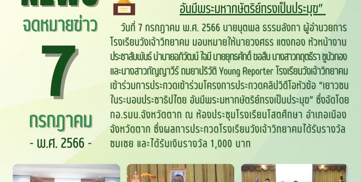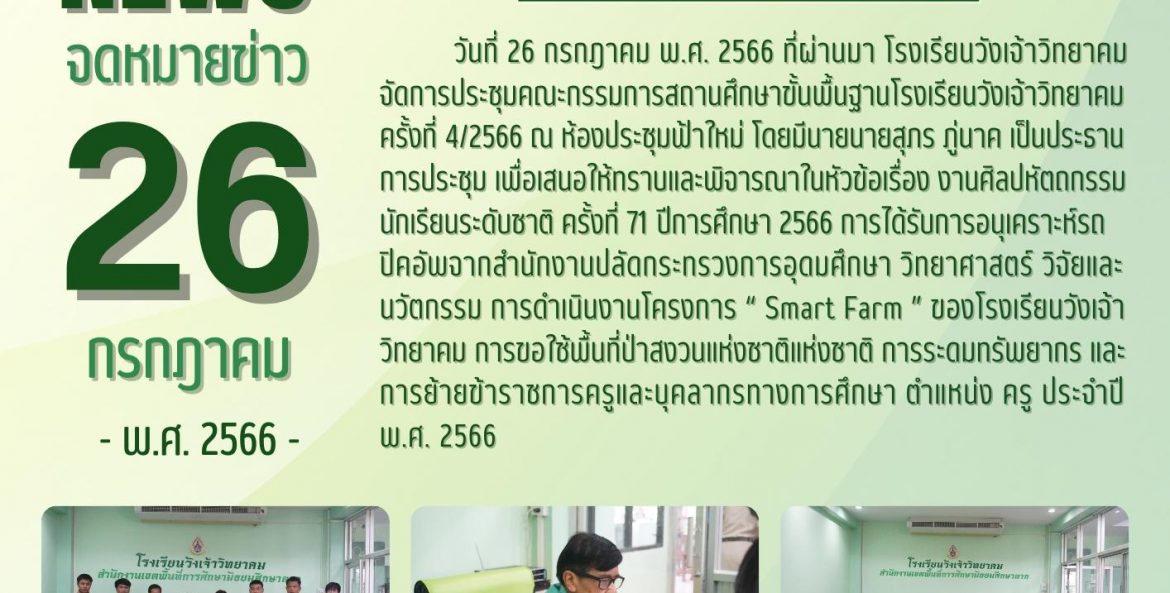 เมื่อวันที่ 10 กรกฎาคม พ.ศ. 2566 ที่ผ่านมา นายวิรุฬห์ คุ้มอารีย์ รองผู้อำนวยการโรงเรียนวังเจ้าวิทยาคม พร้อมด้วยคณะครูและบุคลากรทางการศึกษา เข้าร่วมประชุมประจำเดือนกรกฎาคม เพื่อปรึกษาหารือ กับข้าราชการครูและบุคลากรทุกท่าน เกี่ยวกับการเรียนการสอน เพื่อให้เกิดความรู้ความเข้าใจและมีทักษะในส่วนของการทำงานร่วมกันอย่างมีความสุข มีความเข้าใจเกี่ยวกับความหมายและความสำคัญของงานวิชาชีพครูและด้านอื่นๆ และพัฒนาศักยภาพในการทำงานส่งให้เกิดผลสัมฤทธิ์ภายในองค์กร ณ ห้องประชุมฟ้าใหม่ โรงเรียนวังเจ้าวิทยาคม