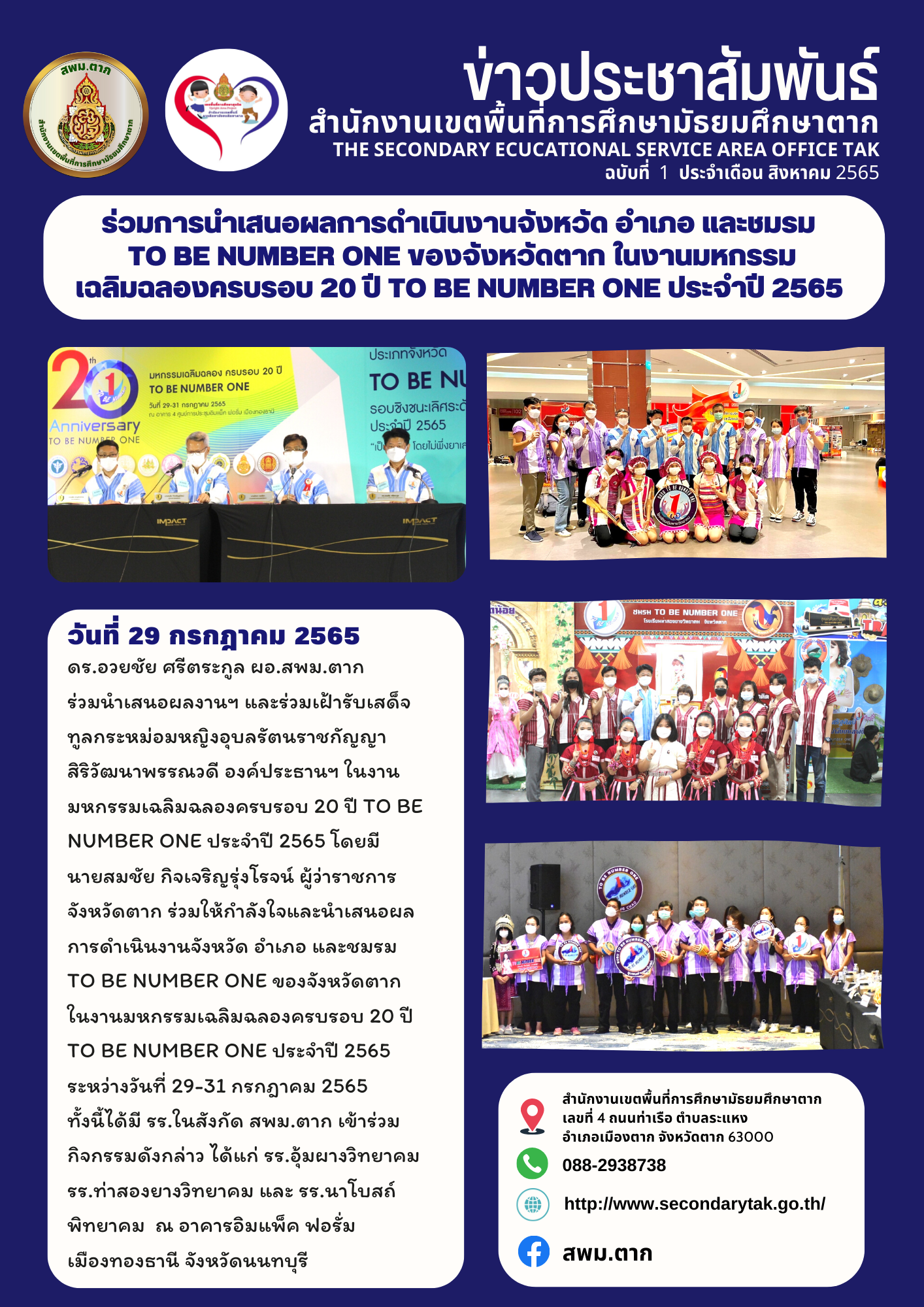ร่วมการนำเสนอผลการดำเนินงานจังหวัด อำเภอ และชมรม TO BE NUMBER ONE วรวุฒิ เนื้อนิ่ม 3 สิงหาคม 2565 สพม.ตาก ร่วมการนำเสนอผลการดำเนินงานจังหวัด อำเภอ และชมรม TO BE NUMBER ONE ของจังหวัดตาก ในงานมหกรรม เฉลิมฉลองครบรอบ 20 ปี TO BE NUMBER ONE ประจำปี 2565 จำนวนคนดู 9