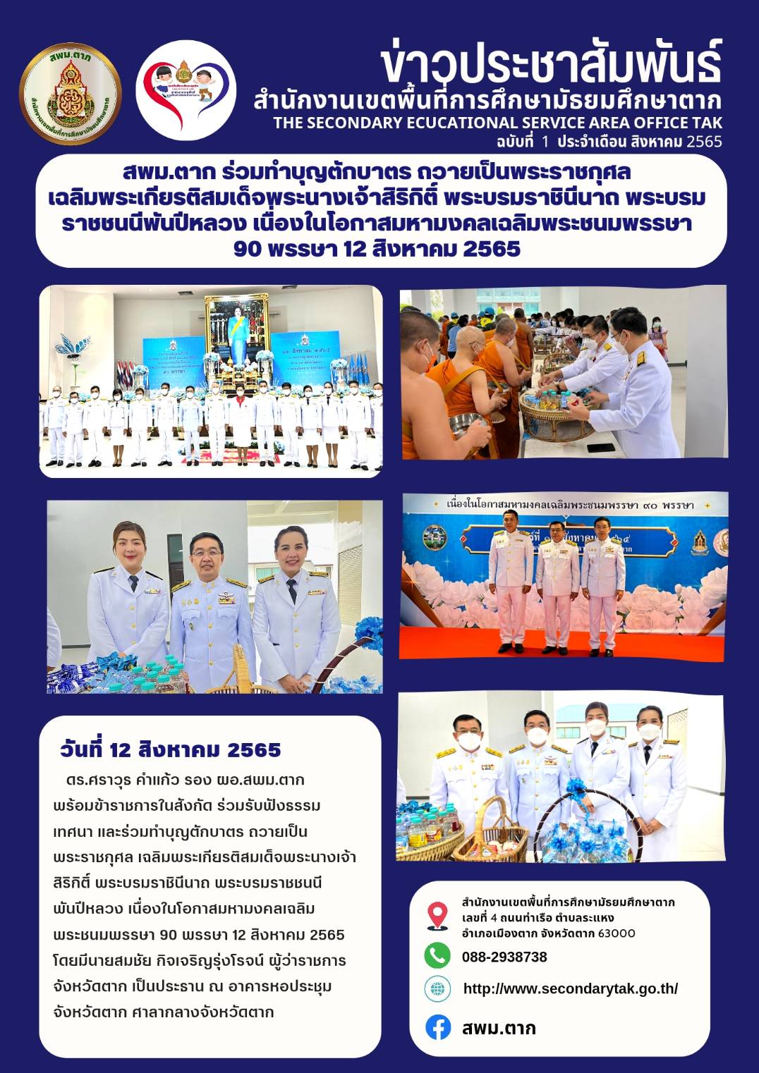 สพม.ตาก ร่วมทำบุญตักบาตร ถวายเป็นพระราชกุศล เฉลิมพระเกียรติสมเด็จพระนางเจ้าสิริกิติ์ พระบรมราชินีนาถ พระบรมราชชนนีพันปีหลวง วรวุฒิ เนื้อนิ่ม 15 สิงหาคม 2565 สพม.ตาก ร่วมทำบุญตักบาตร ถวายเป็นพระราชกุศล เฉลิมพระเกียรติสมเด็จพระนางเจ้าสิริกิติ์ พระบรมราชินีนาถ พระบรมราชชนนีพันปีหลวง เนื่องในโอกาสมหามงคลเฉลิมพระชนมพรรษา 90 พรรษา 12 สิงหาคม 2565 จำนวนคนดู 0