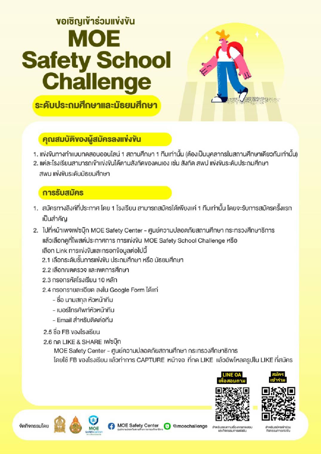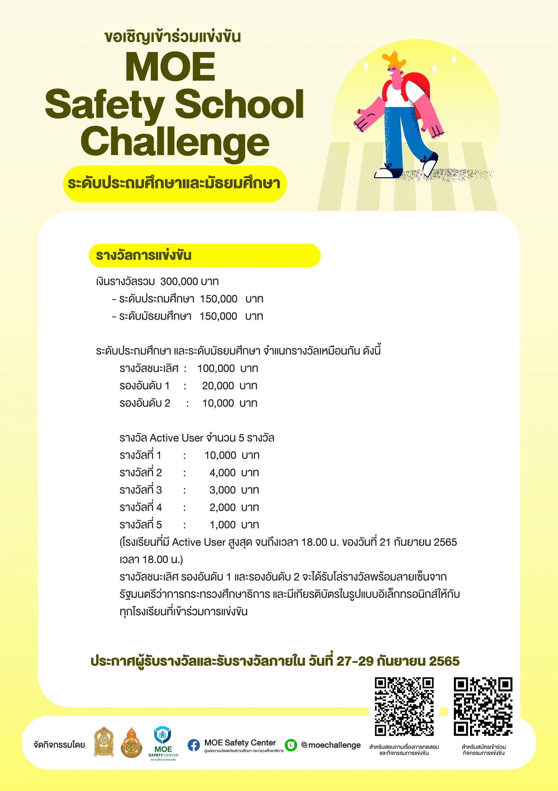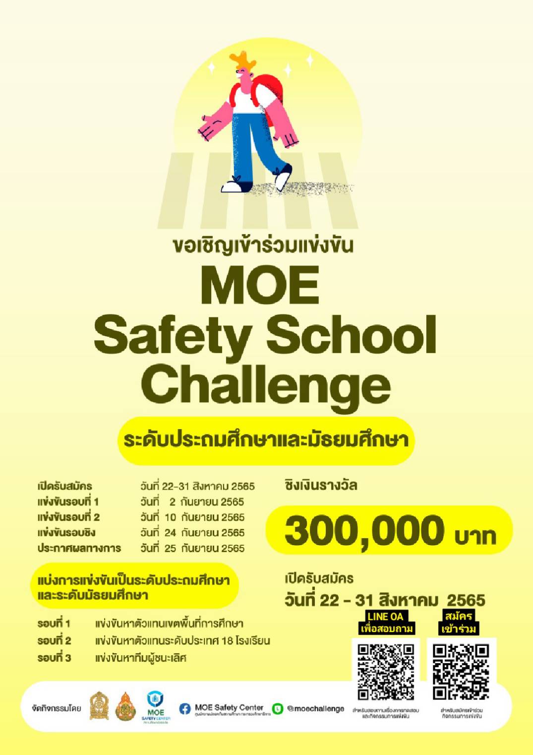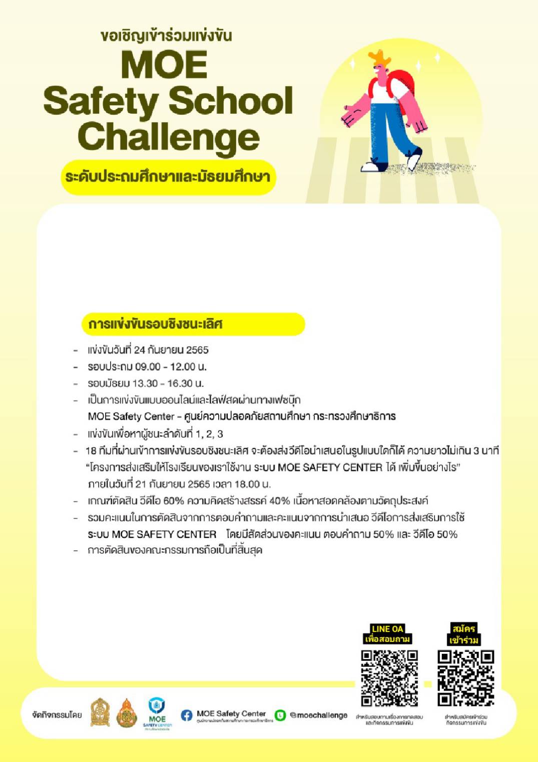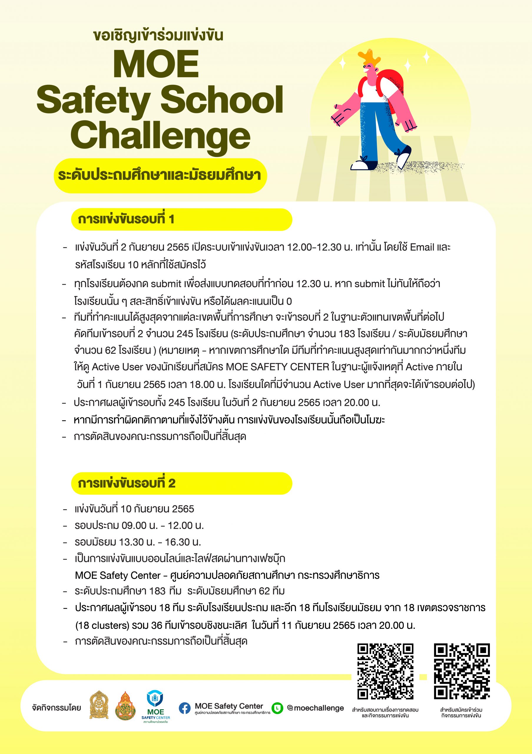 โครงการเสริมสร้างสมรรถนะนักเรียน ครู และบุคลากรทางการศึกษา วรวุฒิ เนื้อนิ่ม 25 สิงหาคม 2565 รับสมัครการแข่งขัน MOE Safety Center จำนวนคนดู 6