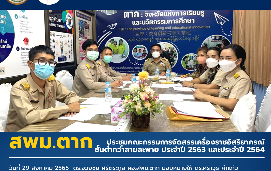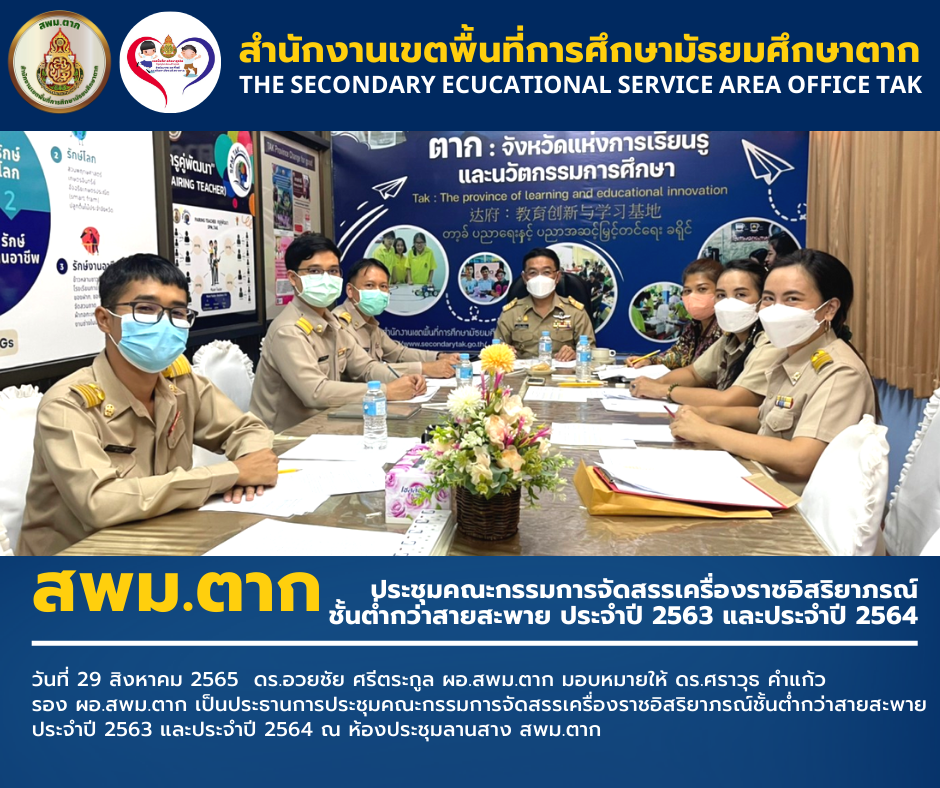 ประชุมคณะกรรมการจัดสรรเครื่องราชอิสริยาภรณ์ วรวุฒิ เนื้อนิ่ม 30 สิงหาคม 2565 วันที่ 29 สิงหาคม 2565 ดร.อวยชัย ศรีตระกูล ผอ.สพม.ตาก มอบหมายให้ ดร.ศราวุธ คำแก้ว รอง ผอ.สพม.ตาก เป็นประธานการประชุมคณะกรรมการจัดสรรเครื่องราชอิสริยาภรณ์ชั้นต่ำกว่าสายสะพาย ประจำปี 2563 และประจำปี 2564 ณ ห้องประชุมลานสาง สพม.ตาก จำนวนคนดู 1