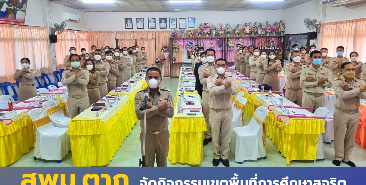 วันที่ 7 ตุลาคม 2565 ส.ต.ต. ดร.นปดล นพเคราะห์ ผอ.สพม.ตาก นำผู้อำนวยการโรงเรียน รองผู้อำนวยการโรงเรียน ผอ.กลุ่มในสังกัด จัดกิจกรรมสร้างวัฒนธรรมองค์กร เขตพื้นที่การศึกษาสุจริต ในการประชุมผู้บริหารสถานศึกษา สังกัดสำนักงานเขตพื้นที่การศึกษามัธยมศึกษาตาก ครั้งที่ 5/2565 โดยร่วมกันร้องเพลงชาติไทย ไหว้พระสวดมนต์ กล่าวปฏิญญาเขตพื้นที่การศึกษาสุจริต ร้องเพลงสรรเสริญพระบารมีและเพลงสดุดีจอมราชา โดยพร้อมเพรียงกัน ณ ห้องประชุมโรงเรียนนาโบสถ์พิทยาคม อำเภอวังเจ้า จังหวัดตาก