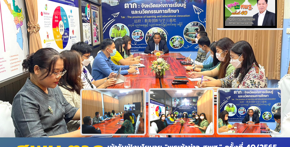 สพม.ตาก เข้ารับฟังนโยบาย “พุธเช้าข่าว สพฐ.” ครั้งที่ 40/2565 และประชุมส่งเสริมประสิทธิภาพ สพม.ตาก วรวุฒิ เนื้อนิ่ม 9 พฤศจิกายน 2565 วันที่ 9 พฤศจิกายน 2565 ส.ต.ต. ดร.นปดล นพเคราะห์ ผอ.สพม.ตาก พร้อมด้วย ผอ.กลุ่มงาน และบุคลากร ร่วมรับฟังนโยบาย ของ สพฐ. ในรายการ “พุธเช้า–ข่าวสพฐ.” ครั้งที่ 40/2565 ผ่านระบบออนไลน์ และ และประชุมส่งเสริมประสิทธิภาพ สพม.ตาก ณ ห้องประชุมลานสาง สพม.ตาก จำนวนคนดู 0