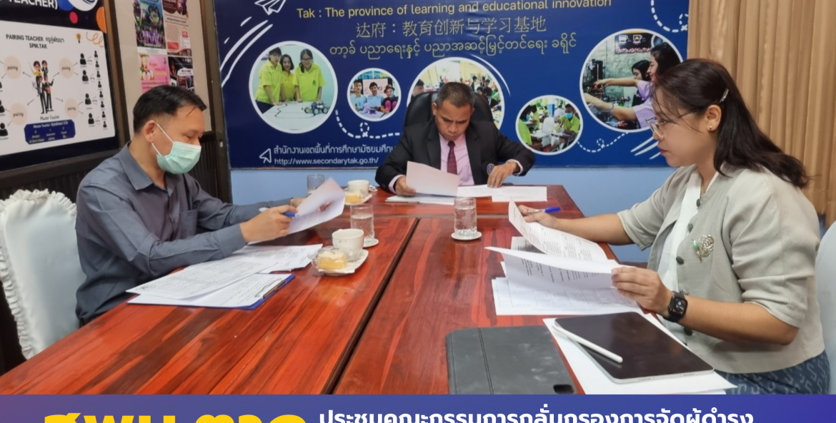 วันที่ 16 พฤศจิกายน 2565 ส.ต.ต. ดร.นปดล นพเคราะห์ ผอ.สพม.ตาก เป็นประธานคณะกรรมการกลั่นกรองการจัดผู้ดำรงตำแหน่งบุคลากรทางการศึกษาอื่น มาตรา 38 ค.(2) ให้ดำรงตำแหน่งตามกรอบอัตรากำลังที่ ก.ค.ศ. กำหนด สังกัด สพม. ตาก พร้อมด้วยคณะกรรมการฯ ณ ห้องประชุมลานสาง สพม.ตาก