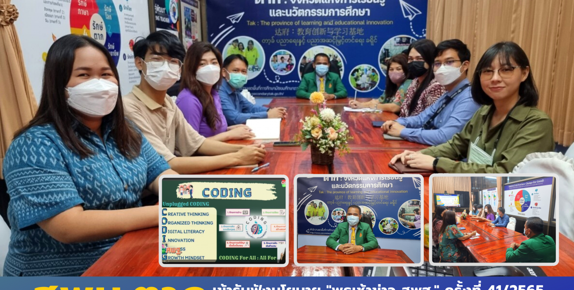 สพม.ตาก เข้ารับฟังนโยบาย “พุธเช้าข่าว สพฐ.” ครั้งที่ 41/2565 และประชุมส่งเสริมประสิทธิภาพ สพม.ตาก วรวุฒิ เนื้อนิ่ม 23 พฤศจิกายน 2565 วันที่ 23 พฤศจิกายน 2565 ส.ต.ต. ดร.นปดล นพเคราะห์ ผอ.สพม.ตาก พร้อมด้วย ผอ.กลุ่มงาน และบุคลากร ร่วมรับฟังนโยบาย ของ สพฐ. ในรายการ “พุธเช้า–ข่าวสพฐ.” ครั้งที่ 41/2565 ผ่านระบบออนไลน์ และ และประชุมส่งเสริมประสิทธิภาพ สพม.ตาก ณ ห้องประชุมลานสาง สพม.ตาก จำนวนคนดู 1