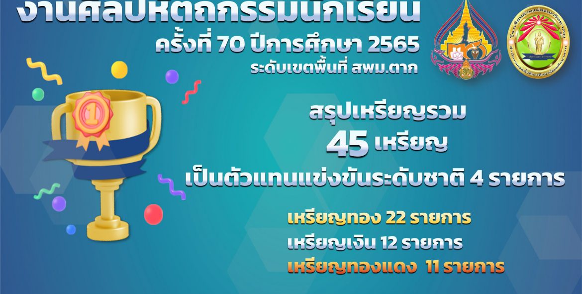 โรงเรียนด่านแม่ละเมาวิทยาคม ขอแสดงความยินดี รางวัลชนะเลิศ ระดับเหรียญทอง งานศิลปหัตถกรรมนักเรียน ครั้งที่ 70 ปีการศึกษา 2565 ระดับเขตพื้นที่ สพม.ตาก และได้เป็นตัวแทนแข่งขันระดับชาติต่อไป หนึ่งฤทัย จีนหน่อ 8 ธันวาคม 2565 จำนวนคนดู 17