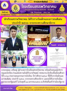 โรงเรียนสรรพวิทยาคม : นายวิชยุตม์ พรหมงาม นักเรียนชั้นมัธยมศึกษาปีที่ ๖/๑๑ ได้รับรางวัลเด็กและเยาวชนดีเด่น ประจำปี ๒๕๖๖ จากกระทรวงศึกษาธิการ นิรมล พิพัฒน์คุปติกุล 15 ธันวาคม 2565 จำนวนคนดู 0