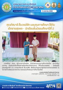 โรงเรียนแม่ปะวิทยาคม : คุณทัศมาลี สืบวงษ์ฟัก มอบทุนการศึกษา ให้กับ เด็กชายสุรพล – นักเรียนชั้นมัธยมศึกษาปีที่ 2 ฐานิช จันทร์ต๊ะ 7 มกราคม 2566 ติดตามข่าวสารเพิ่มเติม คลิกที่นี่ จำนวนคนดู 0