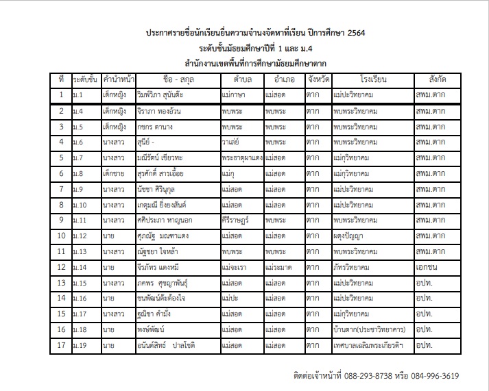 ประกาศรายชื่อนักเรียนยื่นความจำนงจัดหาที่เรียน ปีการศึกษา 2564 กิตติภูมิ พรมมี 28 พฤษภาคม 2564 จัดหาที่เรียน ม.1 ม.4 ปี64 (1) จำนวนคนดู 24