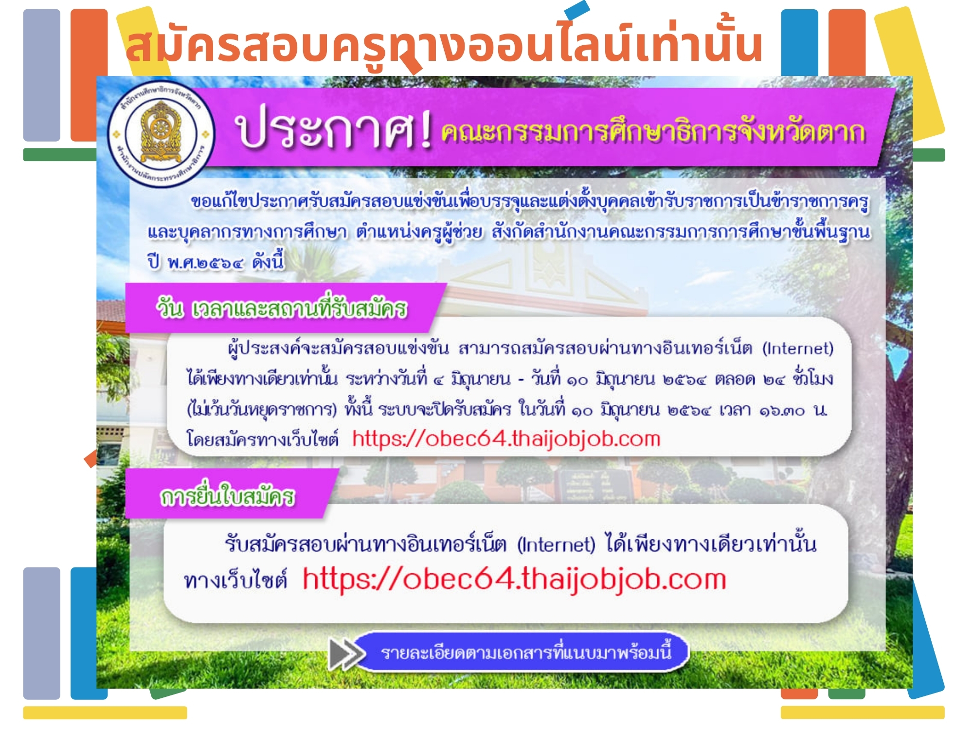 ประกาศคณะกรรมการศึกษาธิการจังหวัดตาก