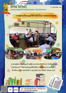 การตรวจเยี่ยมและให้กำลังในการสอบปลายภาค ภาคเรียนที่ 2 ปีการศึกษา 2565 ดาวรุ่ง แหงมปาน 28 กุมภาพันธ์ 2566 นางสาวสุนันทา รัตนหิรัญวงศ์ รองผู้อำนวยการฝ่ายบริหารวิชาการ โรงเรียนบ้านตาก “ประชาวิทยาคาร” ได้ตรวจเยี่ยมและให้กำลังในการสอบปลายภาค ภาคเรียนที่ 2 ปีการศึกษา 2565 ระหว่างวันที่ 27 กุมภาพันธ์ 2566 ถึงวันที่ 1 มีนาคม 2566 จำนวนคนดู 1
