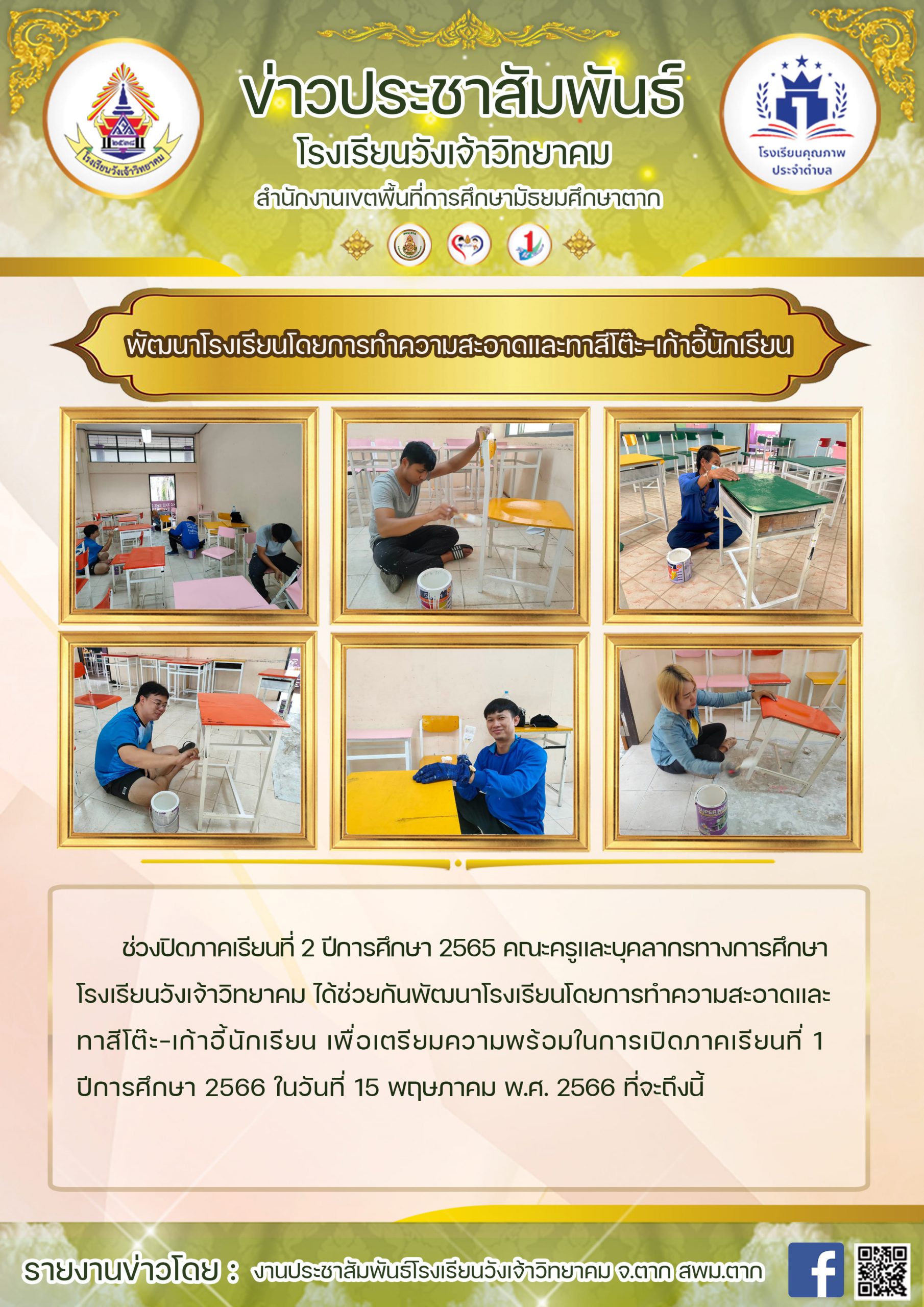 ช่วงปิดภาคเรียนที่ 2 ปีการศึกษา 2565 คณะครูและบุคลากรทางการศึกษาโรงเรียนวังเจ้าวิทยาคม ได้ช่วยกันพัฒนาโรงเรียนโดยการทำความสะอาดและทาสีโต๊ะ-เก้าอี้นักเรียน เพื่อเตรียมความพร้อมในการเปิดภาคเรียนที่ 1 ปีการศึกษา 2566 ในวันที่ 15 พฤษภาคม พ.ศ. 2566 ที่จะถึงนี้