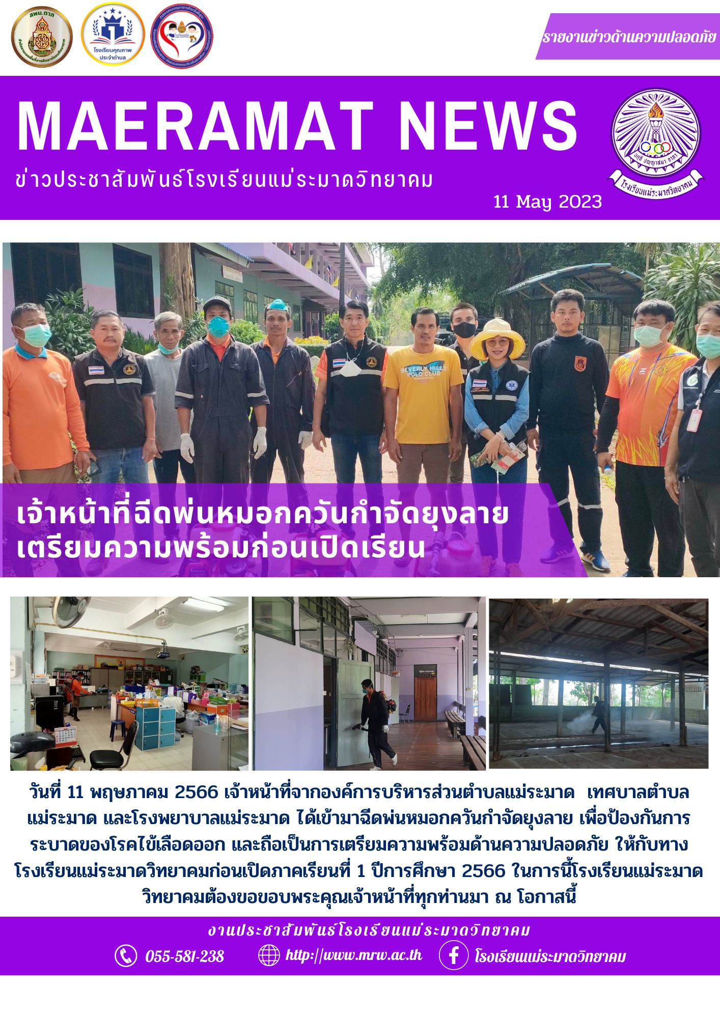 เจ้าหน้าที่ฯฉีดพ่นหมอกควันกำจัดยุงลาย เตรียมความพร้อมก่อนเปิดภาคเรียน น.ส.จารุพร จะนะ 11 พฤษภาคม 2566 จำนวนคนดู 20