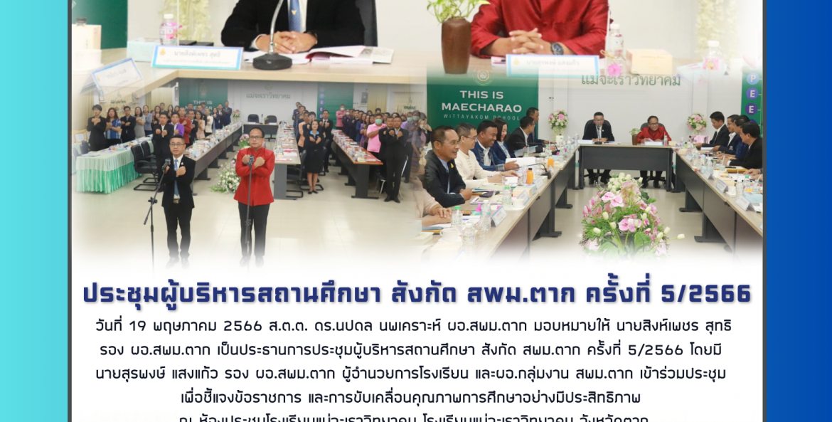 ภาพการประชุมผู้บริหาร สังกัดสพม.ตากสัญจร ปีการศึกษา ๒๕๖๖ จากกล้อง โรงเรียนแม่จะเราวิทยาคม
