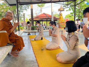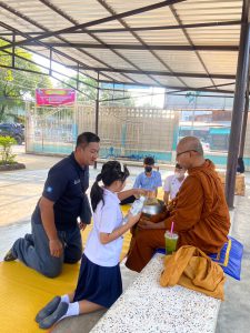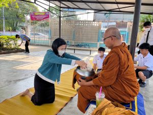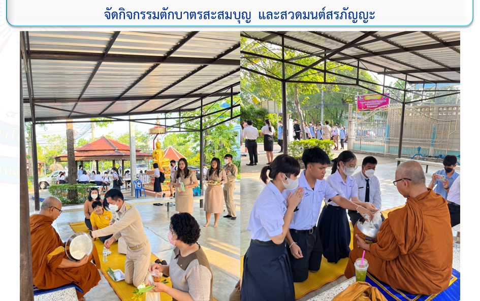 กลุ่มสาระสังคมศึกษา ศาสนา และวัฒนธรรมจัดกิจกรรมตักบาตรสะสมบุญ และสวดมนต์สรภัญญะ