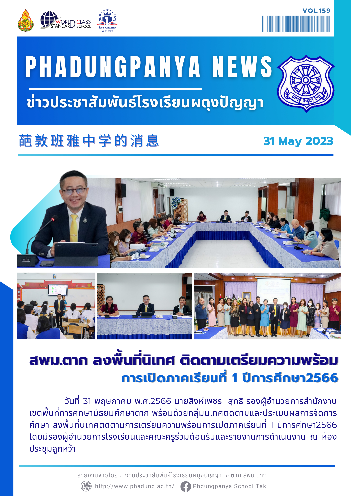 วันที่ 31 พฤษภาคม พ.ศ.2566 นายสิงห์เพชร สุทธิ รองผู้อำนวยการสำนักงานเขตพื้นที่การศึกษามัธยมศึกษาตาก พร้อมด้วยกลุ่มนิเทศติดตามและประเมินผลการจัดการศึกษา ลงพื้นที่นิเทศติดตามการเตรียมความพร้อมการเปิดภาคเรียนที่ 1 ปีการศึกษา 2566 โดยมีรองผู้อำนวยการโรงเรียนและคณะครูร่วมต้อนรับและรายงานการดำเนินงาน ณ ห้องประชุมลูกหว้า