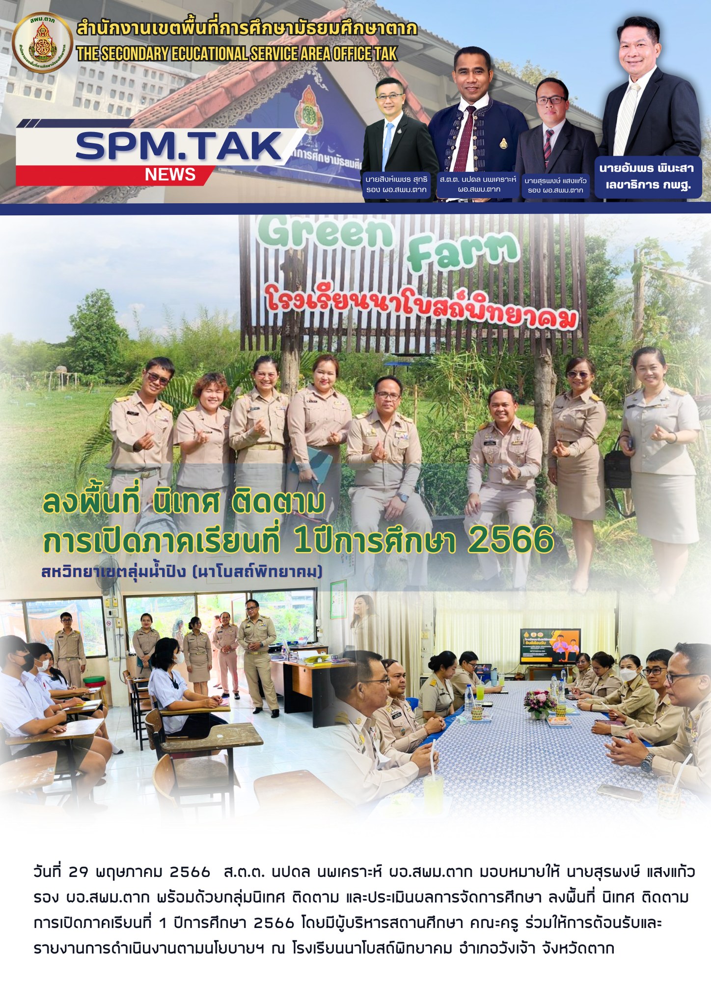 วันที่ 29 พฤษภาคม 2566 ส.ต.ต. นปดล นพเคราะห์ ผอ.สพม.ตาก มอบหมายให้ นายสุรพงษ์ แสงแก้ว รอง ผอ.สพม.ตาก พร้อมด้วยกลุ่มนิเทศ ติดตาม และประเมินผลการจัดการศึกษา ลงพื้นที่ นิเทศ ติดตาม การเปิดภาคเรียนที่ 1 ปีการศึกษา 2566 โดยมีผู้บริหารสถานศึกษา คณะครู ร่วมให้การต้อนรับและรายงานการดำเนินงานตามนโยบายฯ ณ โรงเรียนนาโบสถ์พิทยาคม อำเภอวังเจ้า จังหวัดตาก