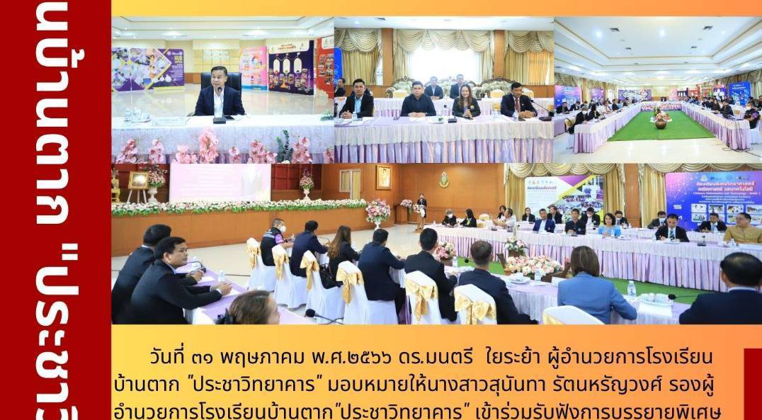 วันที่ ๓๑ พฤษภาคม พ.ศ.๒๕๖๖ ดร.มนตรี ใยระย้า ผู้อำนวยการโรงเรียนบ้านตาก “ประชาวิทยาคาร” มอบหมายให้ นางสาวสุนันทา รัตนหิรัญวงศ์ รองผู้อำนวยการโรงเรียนบ้านตาก”ประชาวิทยาคาร” เข้าร่วมรับฟังการบรรยายพิเศษ