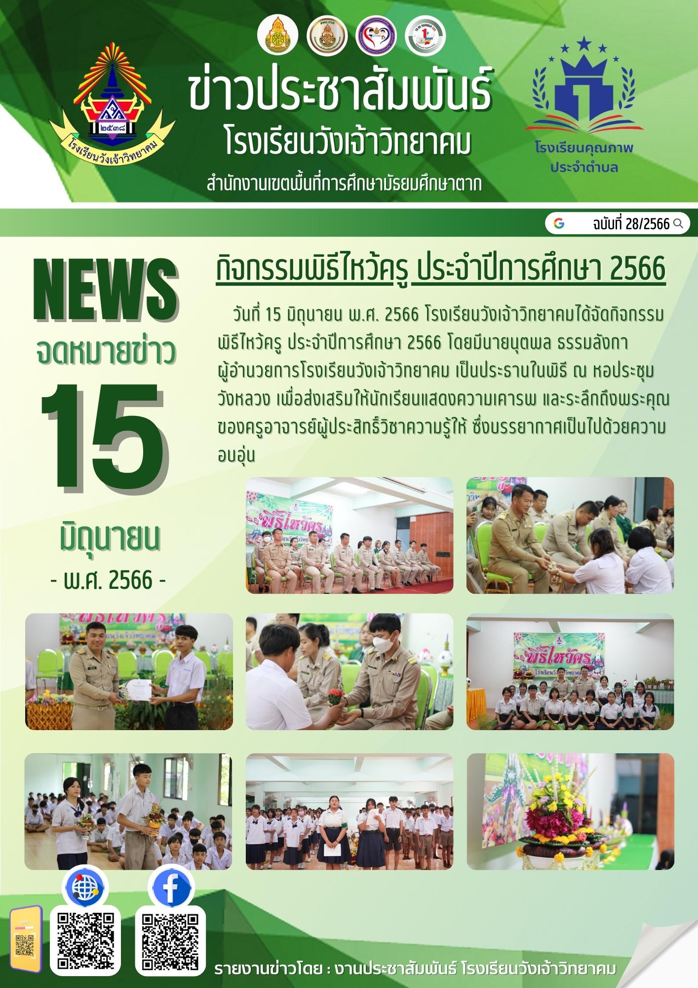 โรงเรียนวังเจ้าวิทยาคม กิจกรรมพิธีไหว้ครู ประจำปีการศึกษา 2566 วงศธร แตงทอง 15 มิถุนายน 2566 จำนวนคนดู 9