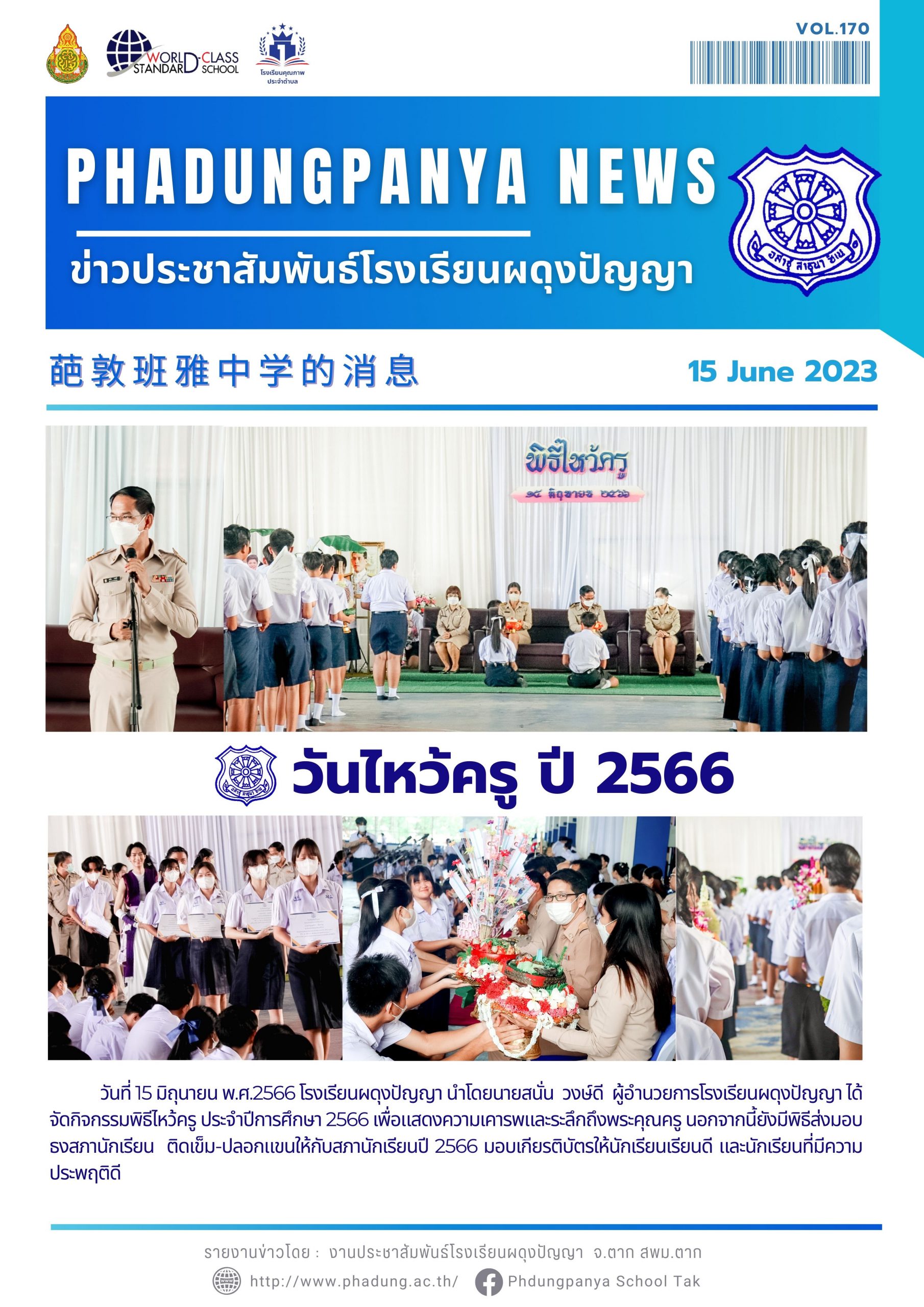 วันที่ 15 มิถุนายน พ.ศ.2566 โรงเรียนผดุงปัญญา นำโดยนายสนั่น วงษ์ดี ผู้อำนวยการโรงเรียนผดุงปัญญา ได้จัดกิจกรรมพิธีไหว้ครู ประจำปีการศึกษา 2566 เพื่อแสดงความเคารพและระลึกถึงพระคุณครู นอกจากนี้ยังมีพิธีส่งมอบธงสภานักเรียน ติดเข็ม-ปลอกแขนให้กับสภานักเรียนปี 2566 มอบเกียรติบัตรให้นักเรียนเรียนดี และนักเรียนที่มีความประพฤติดี