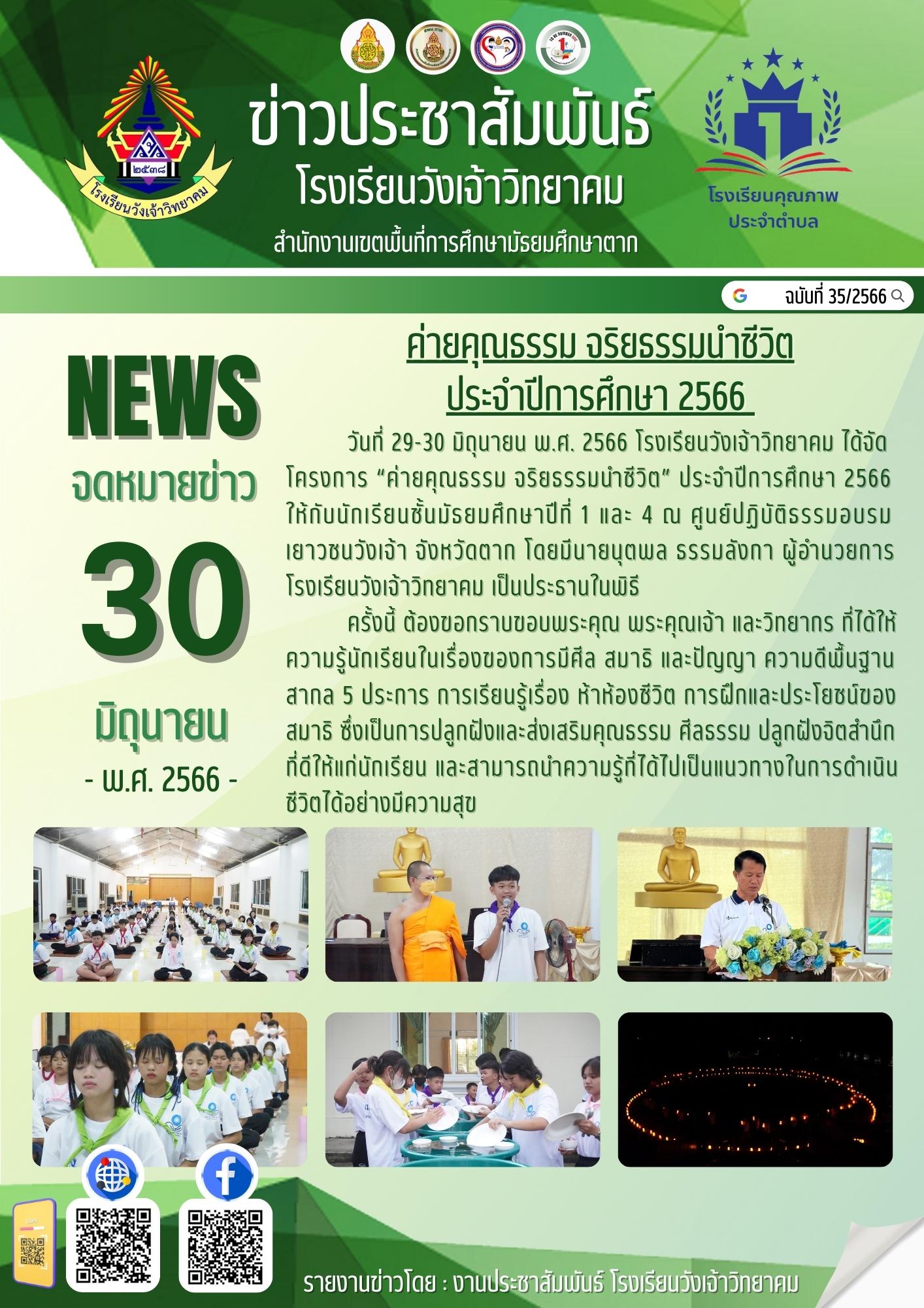 โรงเรียนวังเจ้าวิทยาคม ค่ายคุณธรรม จริยธรรมนำชีวิต ประจำปีการศึกษา 2566 วงศธร แตงทอง 1 กรกฎาคม 2566 จำนวนคนดู 8