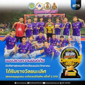 โรงเรียนแม่ปะวิทยาคม นำโดย นางศรีรัตน์ อินทนุ ผู้อำนวยการโรงเรียน ร่วมแสดงความยินดี เนื่องในโอกาส นักเรียนได้รับรางวัลชนะเลิศ ฟุตซอลบุญธรรม ออโตเซอร์วิสคัพ ครั้งที่ 2 U19 รายการ ฟุตซอล บุญธรรม ออโต้ เซอร์วิสคัพ ครั้งที่ 2 ร่วมกับเทศบาลอุตรดิตถ์ ที่สนามพระยาพิชัยดาบหัก รว่างวันที่ 15-16 กรกฎาคม 2566 รายชื่อนักเรียนที่เข้าร่วมแข่งขัน มีดังนี้ 1. นายยุทธจักร ก้องคีรี ม.6/2 2. นายศิริชัย วนาสรณ์(GK) ม.6/2 3. นายบุญทวี คีรีประภพ ม.6/2 4. นายวีระยุทธ กวินวิจิตร ม.6/2 5. นายณัฐพล เกษมสุขไพศาล ม.6/2 6. นายปรีชา เวียงจั่นเพชร ม.5/2 7. นายกิตติชัย กัลยา ม.5/2 8. นายศุภกิตติ์ เทียมพิมานคีรี ม.6/2 9. นายศักดิ์ชัย วิเชียรชัยคีรี ม.2/1 10. นายจิรพล รุ่งเรืองวนาศรม ม.4/2 11. นายเฉลิมขวัญ อิ่มแสงทอง(GK) ม.4/2 12. นายอำพล จรรยาสุภาพ ม.4/2 13. นายปฏิพล แซ่ย่าง 14. นายธีรเมธ บุญสอน 15. นายสุธา ญาณทิพย์เจริญ ผู้ฝึกสอน นายชลิต สากลวารี