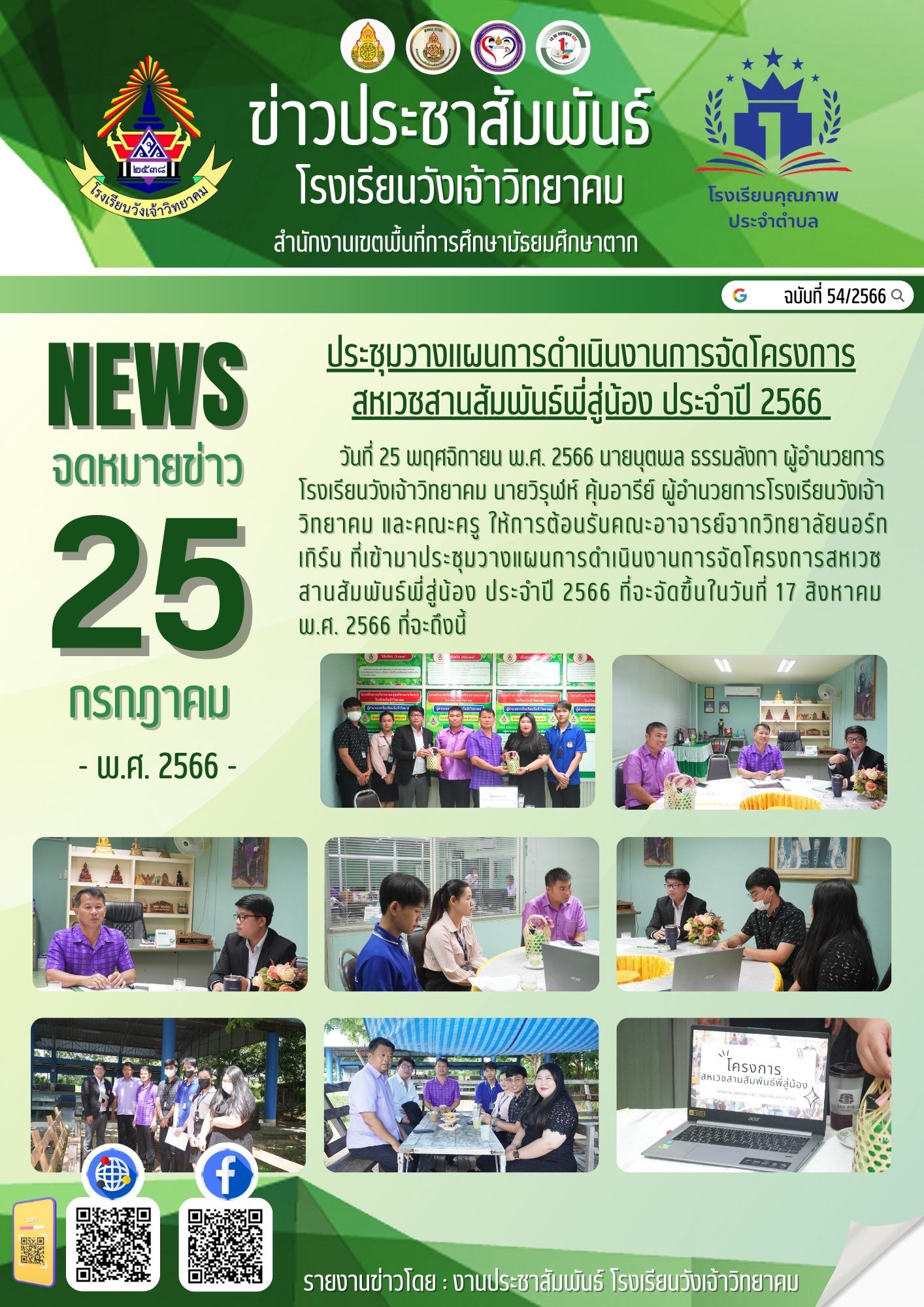 โรงเรียนวังเจ้าวิทยาคม ประชุมวางแผนการดำเนินงานการจัดโครงการ สหเวชสานสัมพันธ์พี่สู่น้อง วงศธร แตงทอง 26 กรกฎาคม 2566 จำนวนคนดู 3