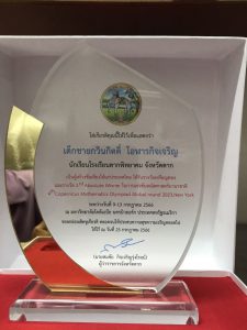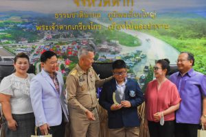เด็กชายกวินกิตติ์ โอฬารกิจเจริญ นักเรียนระดับชั้นมัธยมศึกษาปีที่ 1/1 โรงเรียนตากพิทยาคม เข้ารับโล่เกียรติคุณ จากผู้ว่าราชการจังหวัดตาก