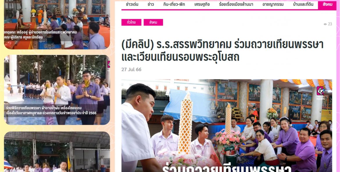 โรงเรียนสรรพวิทยาคม : ร่วมถวายเทียนและเวียนเทียน เนื่องในเทศกาลวันอาสาฬหบูชาและเข้าพรรษา ประจำปี ๒๕๖๖ นิรมล พิพัฒน์คุปติกุล 31 กรกฎาคม 2566 จำนวนคนดู 2