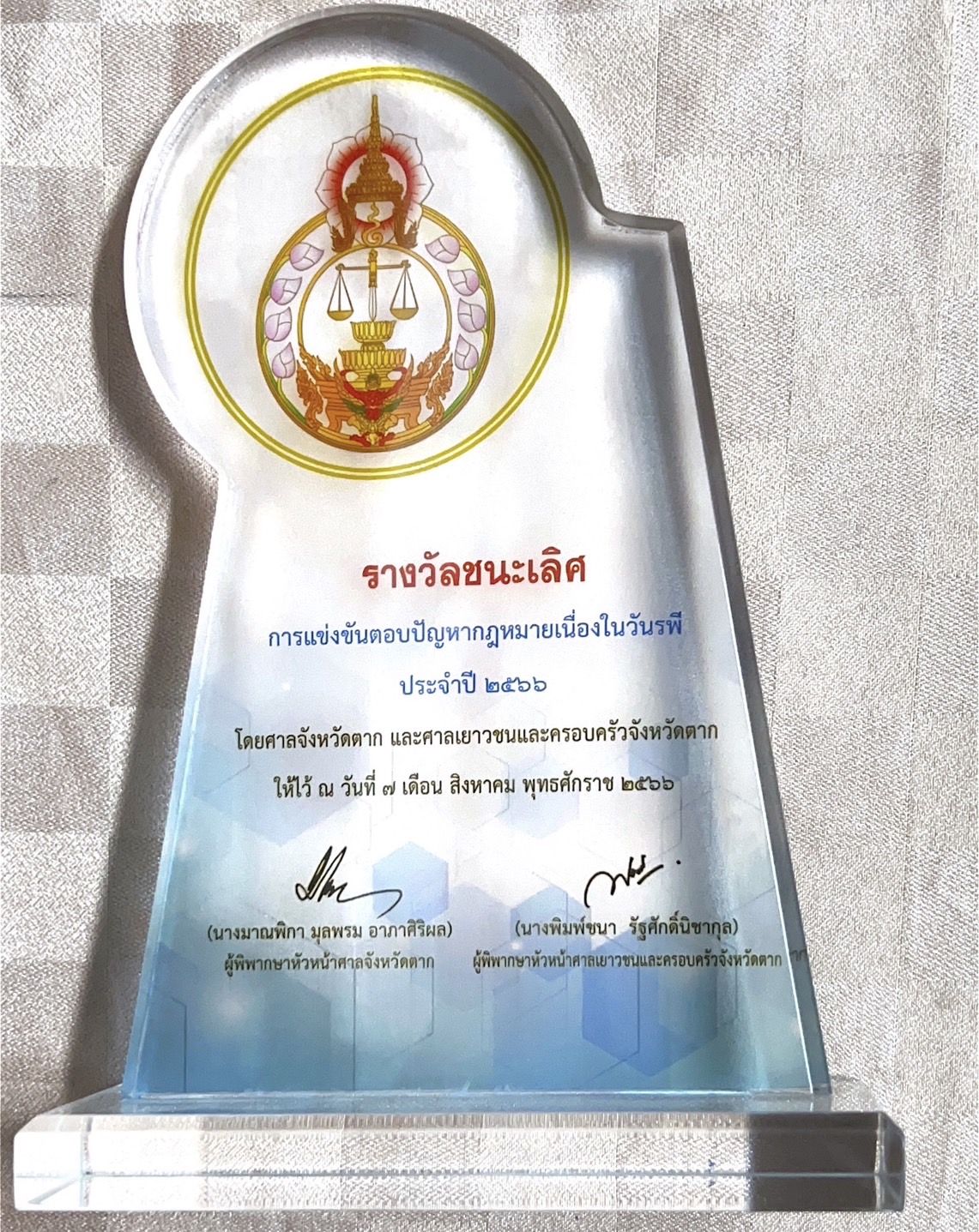 วันที่ 6 สิงหาคม 2566 นายรัติน์พงษ์ สันตติภัค ผู้อำนวยการโรงเรียนสามเงาวิทยาคม ได้มอบหมายให้นายฤชากร เพ็งสว่าง หัวหน้ากลุ่มสาระการเรียนรู้สังคมศึกษาและนักเรียนเข้าร่วมการแข่งขันตอบปัญหากฎหมาย ระดับมัธยมศึกษา เนื่องในวัน’’รพี’’ของสำนักงานศาลยุติธรรม ประจำปีการศึกษา 2566 รอบคัดเลือกระดับจังหวัดตาก ซึ่งโดย ศาลจังหวัดตาก ศาลเยาวชนและครอบครัวจังหวัดตาก จากโรงเรียนมัธยมจังหวัดตาก โดยผลการแข่งขัน นายนครินทร์ พิลึก และ นางสาวกัญญาพัช กองทรัพย์ นักเรียนชั้นมัธยมศึกษาปีที่ 5 โรงเรียนสามเงาวิทยาคม ได้รับรางวัลชนะเลิศ ได้รับโล่ประกาศเกียรติคุณ พร้อมทุนการศึกษา จำนวน 5,000 บาท พร้อมเกียรติบัตร จากผู้พิพากษาหัวหน้าศาลเยาวชนและครอบครัวจังหวัดตาก และเป็นตัวแทนจังหวัดตากเพื่อเข้าร่วมการแข่งในระดับภูมิภาค ณ สำนักงานอธิบดีผู้พิพากษา ภาคที่ 6 จังหวัดพิษณุโลก