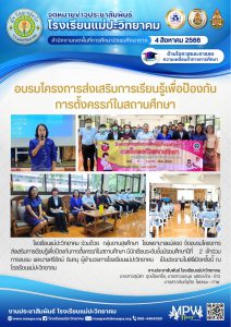 โรงเรียนแม่ปะวิทยาคม ร่วมด้วย กลุ่มงานสุขศึกษา โรงพยาบาลแม่สอด จัดอบรมโครงการส่งเสริมการเรียนรู้เพื่อป้องกันการตั้งครรภ์ในสถานศึกษา มีนักเรียนระดับชั้นมัธยมศึกษาปีที่ 2 เข้าร่วมการอบรม เเละนางศรีรัตน์ อินทนุ ผู้อำนวยการโรงเรียนแม่ปะวิทยาคม เป็นประธานในพิธีเปิดครั้งนี้ ณ โรงเรียนแม่ปะวิทยาคม