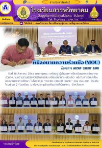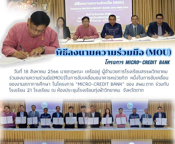 โรงเรียนสรรพวิทยาคม : ลงนามความร่วมมือ (MOU) โครงการ MICRO-CREDIT BANK นิรมล พิพัฒน์คุปติกุล 22 สิงหาคม 2566 จำนวนคนดู 10