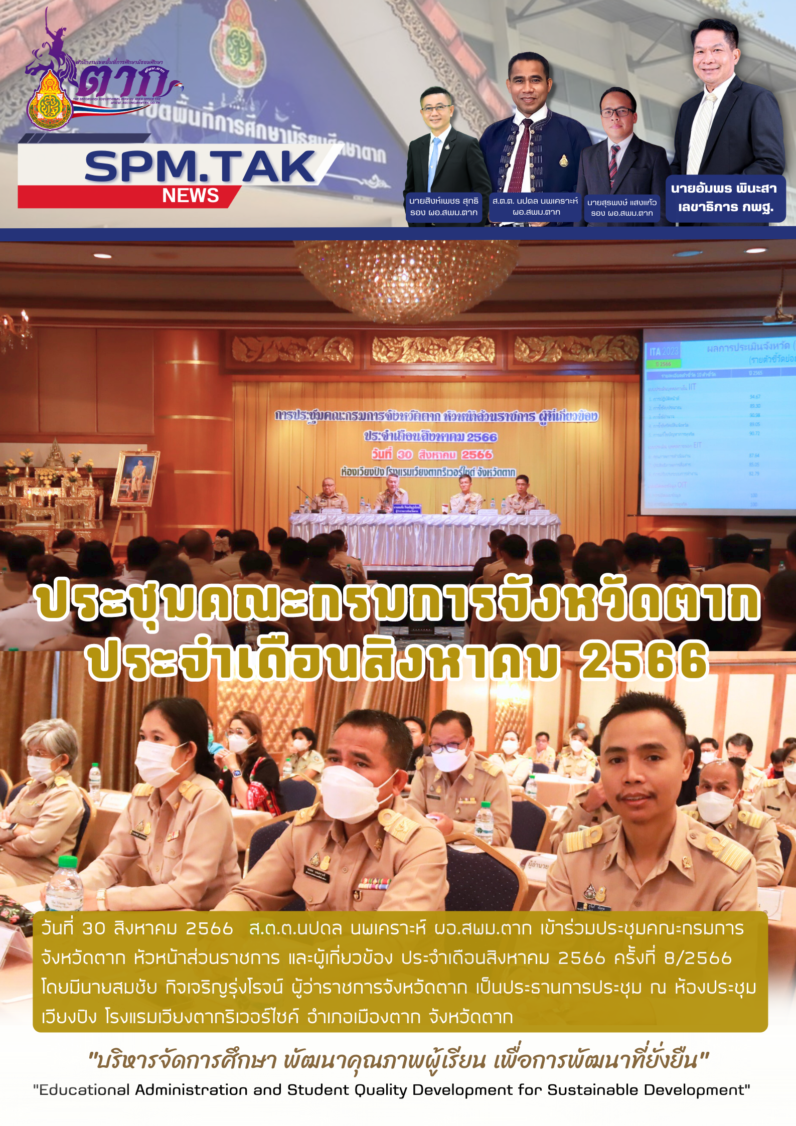วันที่ 30 สิงหาคม 2566 ส.ต.ต.นปดล นพเคราะห์ ผอ.สพม.ตาก เข้าร่วมประชุมคณะกรมการ จังหวัดตาก หัวหน้าส่วนราชการ และผู้เกี่ยวข้อง ประจำเดือนสิงหาคม 2566 ครั้งที่ 8/2566 โดยมีนายสมชัย กิจเจริญรุ่งโรจน์ ผู้ว่าราชการจังหวัดตาก เป็นประธานการประชุม ณ ห้องประชุมเวียงปิง โรงแรมเวียงตากริเวอร์ไซค์ อำเภอเมืองตาก จังหวัดตาก