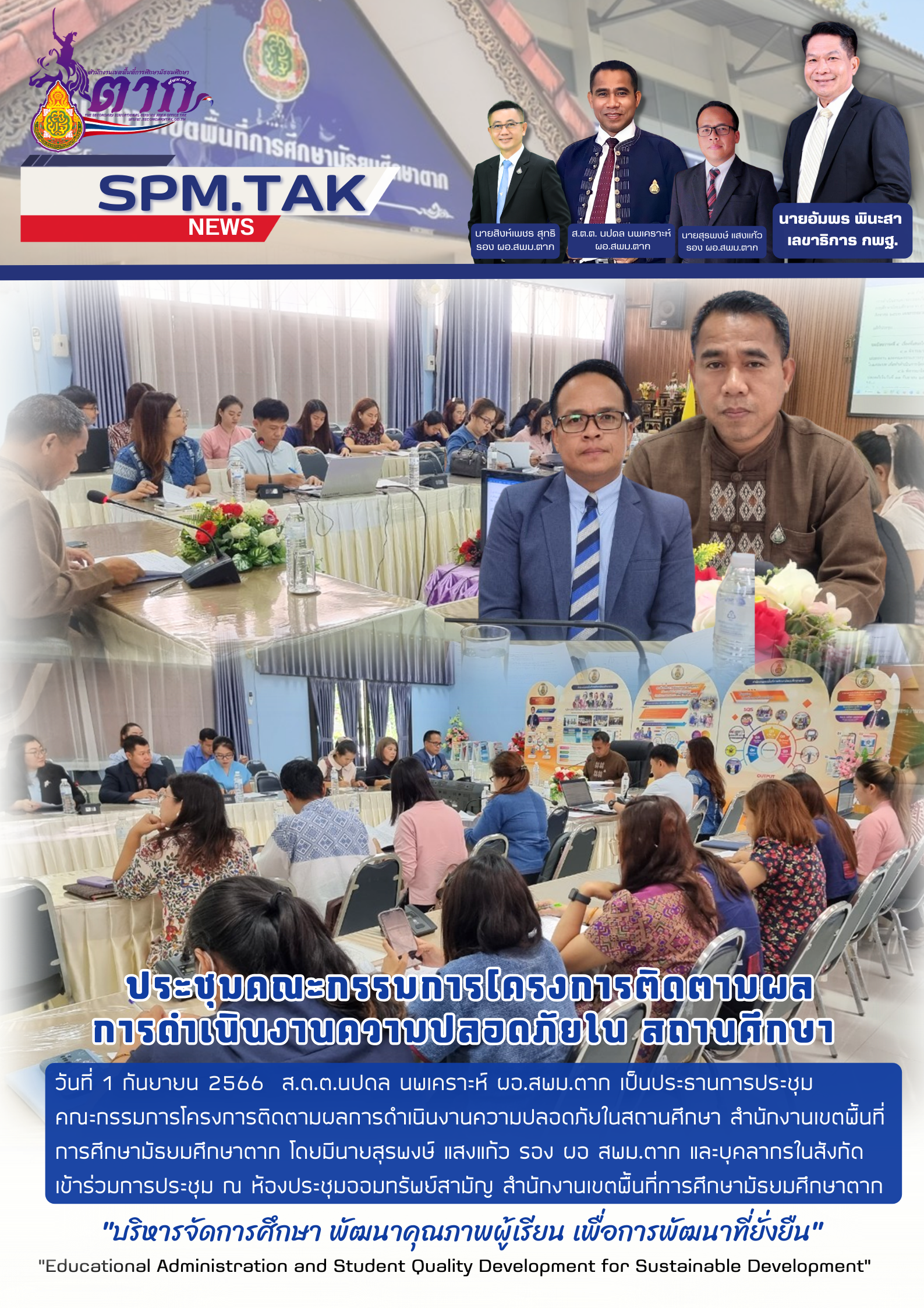 วันที่ 1 กันยายน 2566 ส.ต.ต.นปดล นพเคราะห์ ผอ.สพม.ตาก เป็นประธานการประชุม คณะกรรมการโครงการติดตามผลการดำเนินงานความปลอดภัยในสถานศึกษา สำนักงานเขตพื้นที่การศึกษามัธยมศึกษาตาก โดยมีนายสุรพงษ์ แสงแก้ว รอง ผอ สพม.ตาก และบุคลากรในสังกัด เข้าร่วมการประชุม ณ ห้องประชุมออมทรัพย์สามัญ สำนักงานเขตพื้นที่การศึกษามัธยมศึกษาตาก