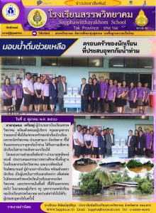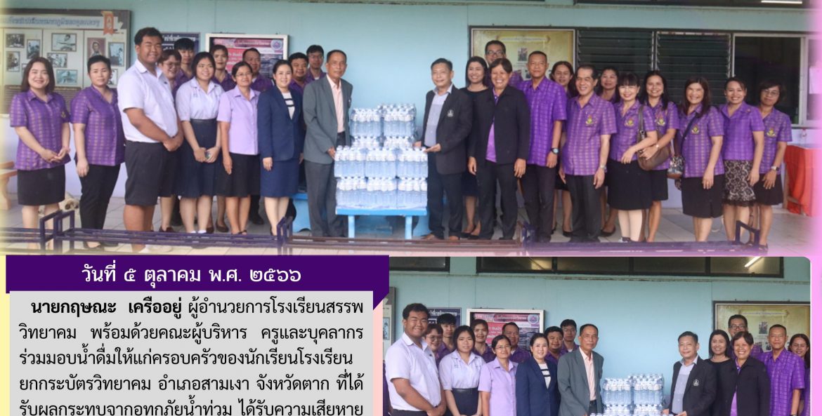 โรงเรียนสรรพวิทยาคม : ร่วมมอบน้ำดื่มให้แก่ครอบครัวของนักเรียนโรงเรียนยกกระบัตรวิทยาคม อำเภอสามเงา จังหวัดตาก ที่ประสบอุทกภัยน้ำท่วม นิรมล พิพัฒน์คุปติกุล 7 ตุลาคม 2566 จำนวนคนดู 3