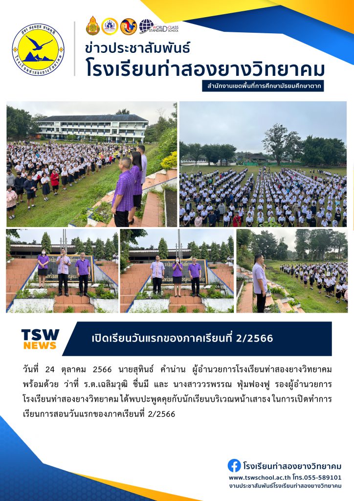โรงเรียนท่าสองยางวิทยาคม:เปิดเรียนวันแรกของภาคเรียนที่ 2/2566 นายเทวัณ ดำดี 25 ตุลาคม 2566 จำนวนคนดู 10