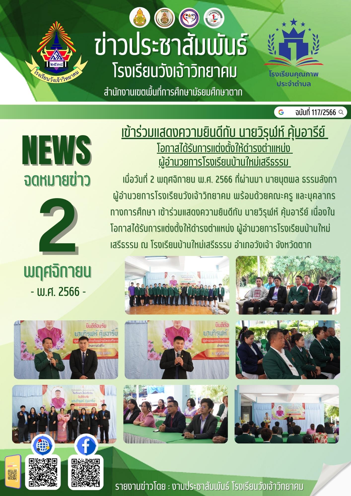 โรงเรียนวังเจ้าวิทยาคม แสดงความยินดีกับ นายวิรุฬห์ คุ้มอารีย์ เนื่องในโอกาสได้รับการแต่งตั้งให้ดำรงตำแหน่ง ผู้อำนวยการโรงเรียนบ้านใหม่เสรีธรรม วงศธร แตงทอง 3 พฤศจิกายน 2566 จำนวนคนดู 10