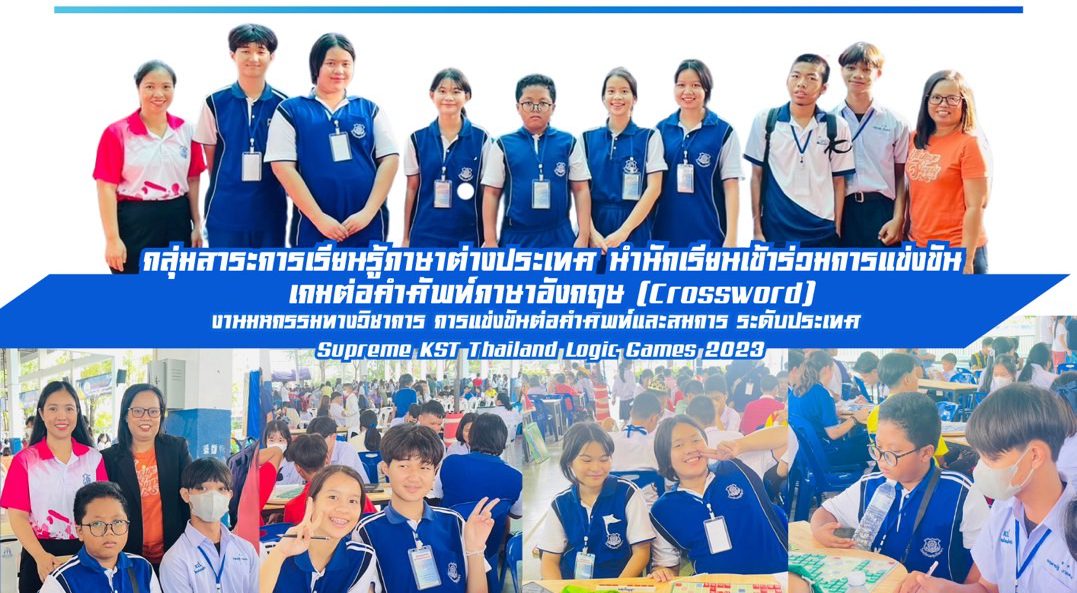 วันที่ 12 พฤศจิกายน 2566 นายสนั่น วงษ์ดี ผู้อำนวยการโรงเรียนผดุงปัญญา มอบหมายให้กลุ่มสาระการเรียนรู้ภาษาต่างประเทศ นำนักเรียนเข้าร่วมการแข่งขันเกมต่อคำศัพท์ภาษาอังกฤษ (Crossword) ในงานมหกรรมทางวิชาการ การแข่งขันต่อคำศัพท์และสมการ ระดับประเทศ Supreme KST Thailand Logic Games 2023 ณ โรงเรียนตากพิทยาคม จังหวัดตาก ทั้งนี้กลุ่มสาระการเรียนรู้ภาษาต่างประเทศได้นำนักเรียนเข้าร่วม ดังนี้