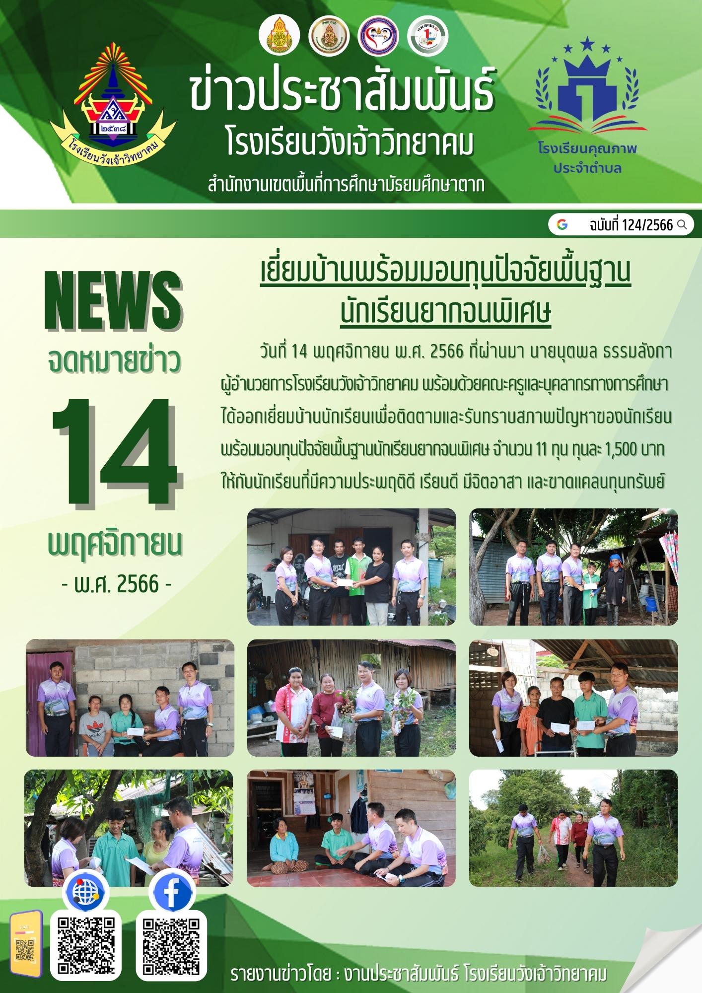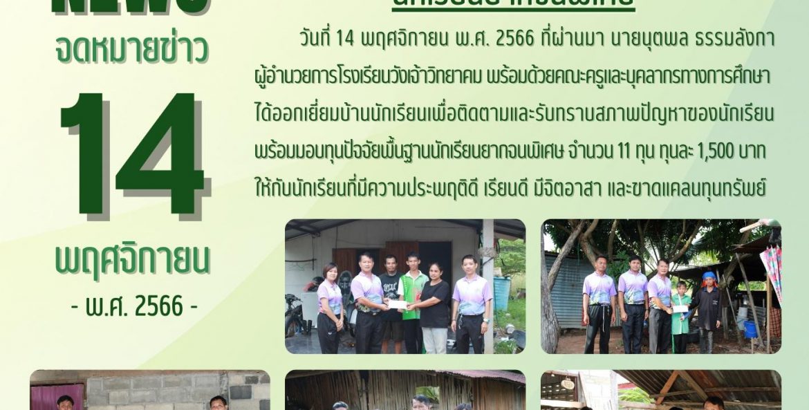 โรงเรียนวังเจ้าวิทยาคม เยี่ยมบ้านพร้อมมอบทุนปัจจัยพื้นฐานนักเรียนยากจนพิเศษ วงศธร แตงทอง 15 พฤศจิกายน 2566 จำนวนคนดู 8