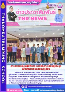 วันอังคาร ที่ 15 พฤศจิกายน 2566 นายอนุสรณ์ เสระศาสตร์ ผู้อำนวยการ โรงเรียนถนอมราษฎร์บำรุง พร้อมด้วยคณะครู โรงเรียนถนอมราษฎร์บำรุง เข้าร่วมการอบรมเชิงปฏิบัติการ การจัดการเรียนรู้เชิงรุก เพื่อพัฒนาสมถรรนะผู้เรียน ที่สอดคล้องกับตัวชี้วัดระหว่างทาง และตัวชี้วัดปลายทาง ตามหลักสูตรแกนกลางทางการศึกษา ขั้นพื้นฐานพุทธศักราช 2551 ณ ห้องประชมทองกวาว โรงเรียนผดุงปัญญา