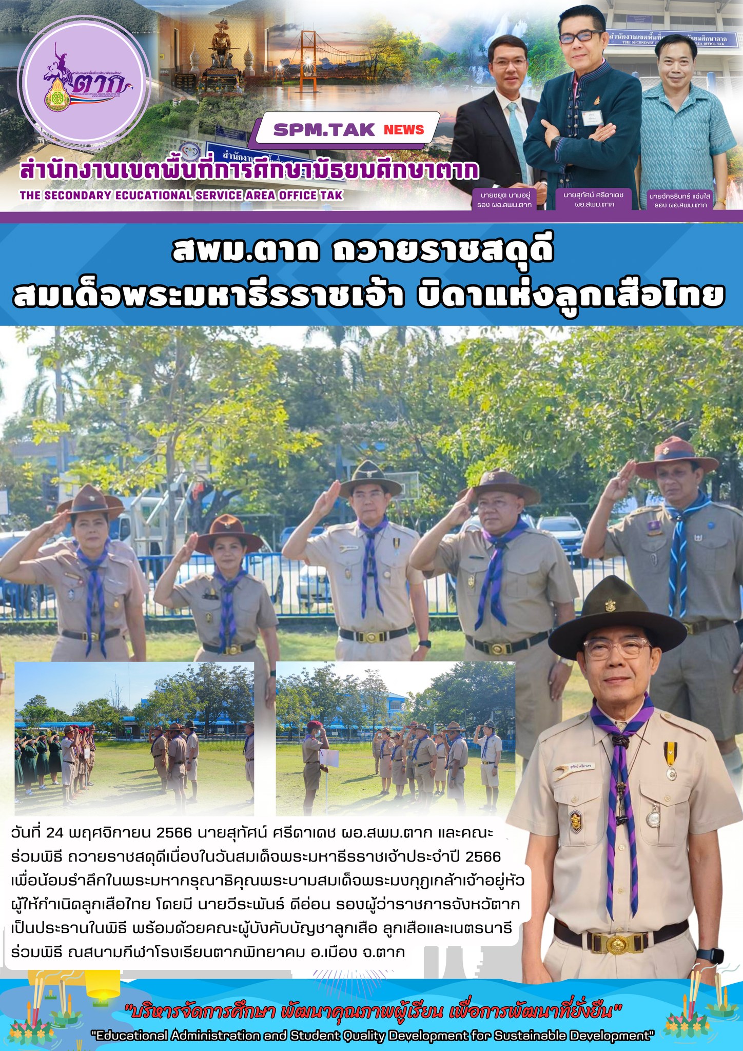 สพม.ตาก ถวายราชสดุดี สมเด็จพระมหาธีรราชเจ้า บิดาแห่งลูกเสือไทย วรวุฒิ เนื้อนิ่ม 24 พฤศจิกายน 2566 จำนวนคนดู 4