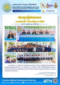 นางทองเพียร วาทา ผู้อำนวยการโรงเรียนแม่ปะวิทยาคม เป็นประธานในพิธีการประชุมผู้ปกครองนักเรียนระดับชั้นมัธยมศึกษาปีที่ 1-6 ภาคเรียนที่ 2 ปีการศึกษา 2566 ซึ่งจัดขึ้นเพื่อรับทราบนโยบาย ของโรงเรียน เพื่อหาแนวทางปฏิบัติร่วมกันระหว่างโรงเรียน นักเรียน และผู้ปกครองนักเรียน ณ โรงเรียน เเม่ปะวิทยาคม จังหวัดตาก