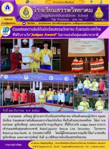 โรงเรียนสรรพวิทยาคม : ร่วมแสดงความยินดีกับนักเรียนสรรพวิทยาคม ตัวแทนประเทศไทย ที่ได้รับรางวัล Judges Award ในการแข่งขันหุ่นยนต์นานาชา นิรมล พิพัฒน์คุปติกุล 24 ธันวาคม 2566 จำนวนคนดู 5
