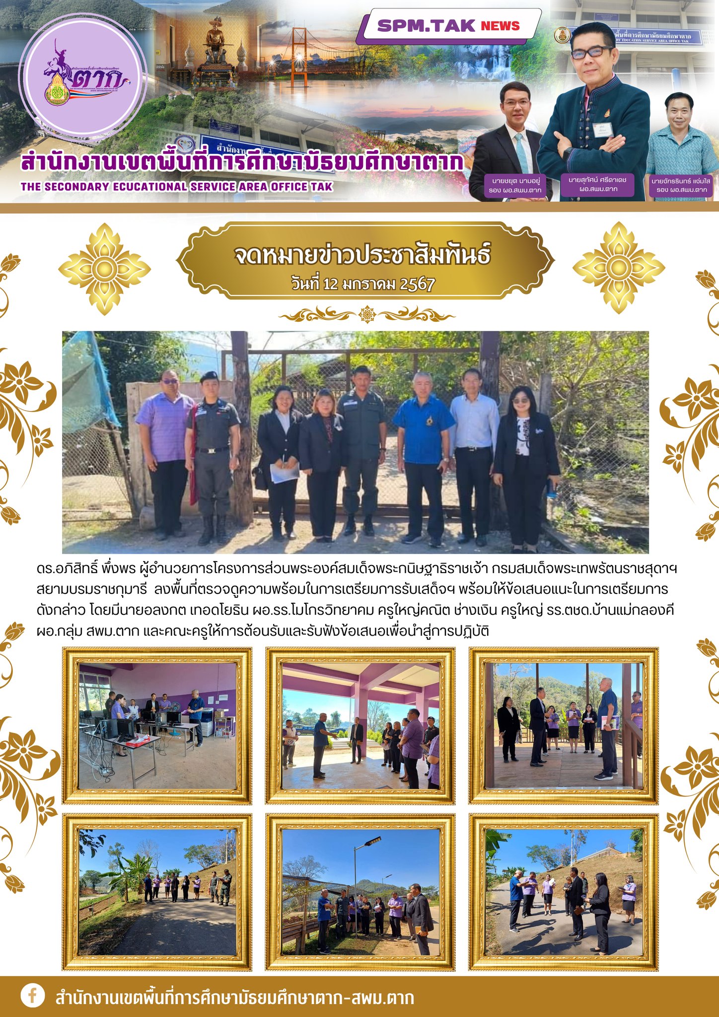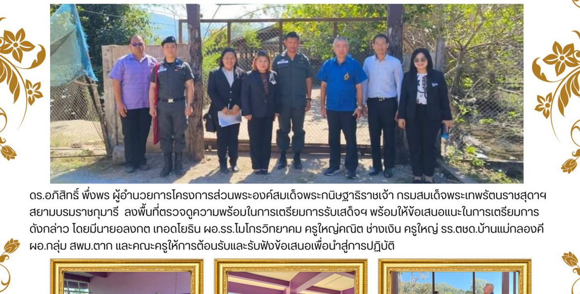 ดร.อภิสิทธิ์ พึ่งพร ผู้อำนวยการโครงการส่วนพระองค์สมเด็จพระกนิษฐาธิราชเจ้า กรมสมเด็จพระเทพรัตนราชสุดาฯ สยามบรมราชกุมารี ลงพื้นที่ตรวจดูความพร้อมในการเตรียมการรับเสด็จฯ พร้อมให้ข้อเสนอแนะในการเตรียมการดังกล่าว โดยมีนายอลงกต เทอดโยธิน ผอ.รร.โมโกรวิทยาคม ครูใหญ่คณิต ช่างเงิน ครูใหญ่ รร.ตชด.บ้านแม่กลองคี ผอ.กลุ่ม สพม.ตาก และคณะครูให้การต้อนรับและรับฟังข้อเสนอเพื่อนำสู่การปฏิบัติ